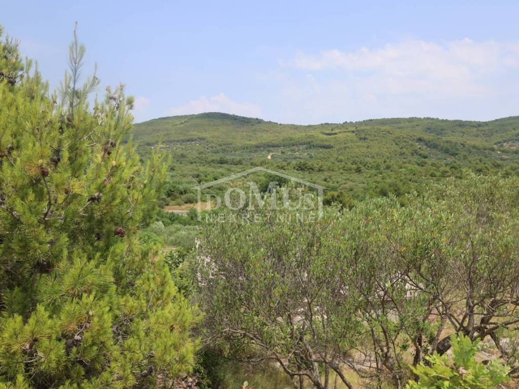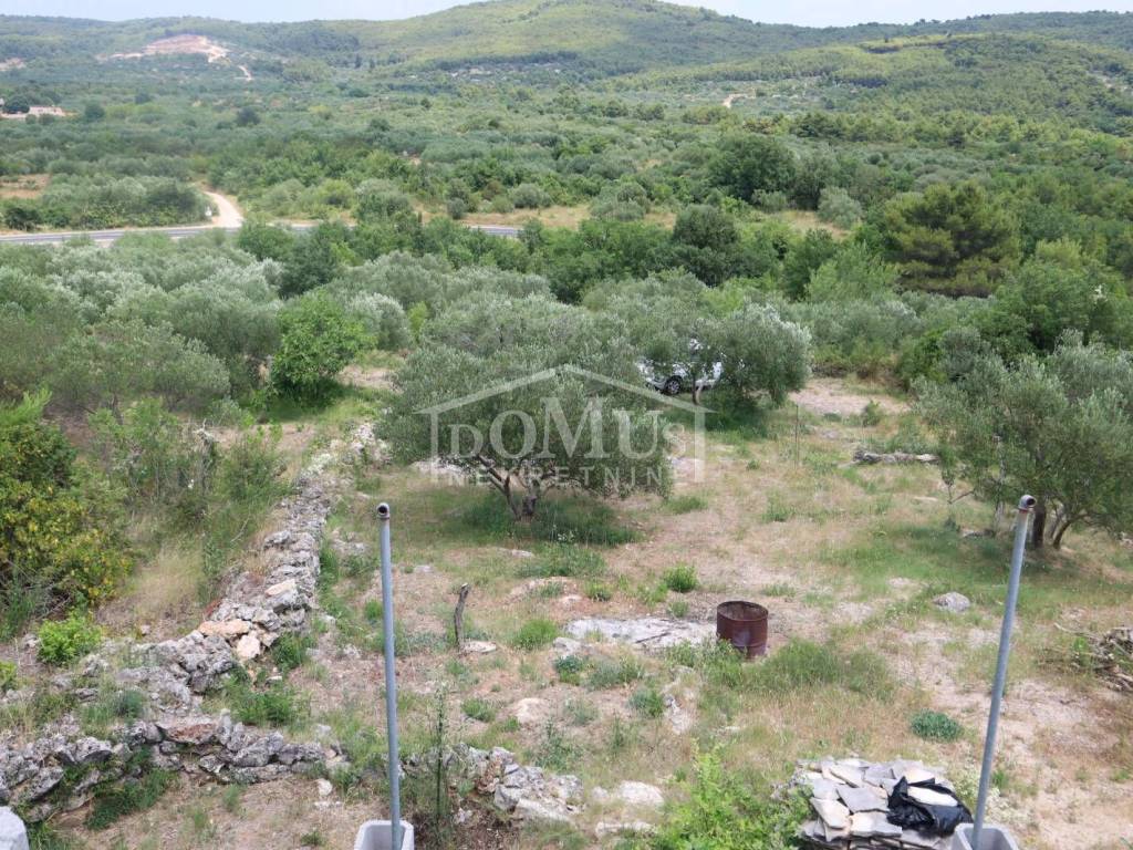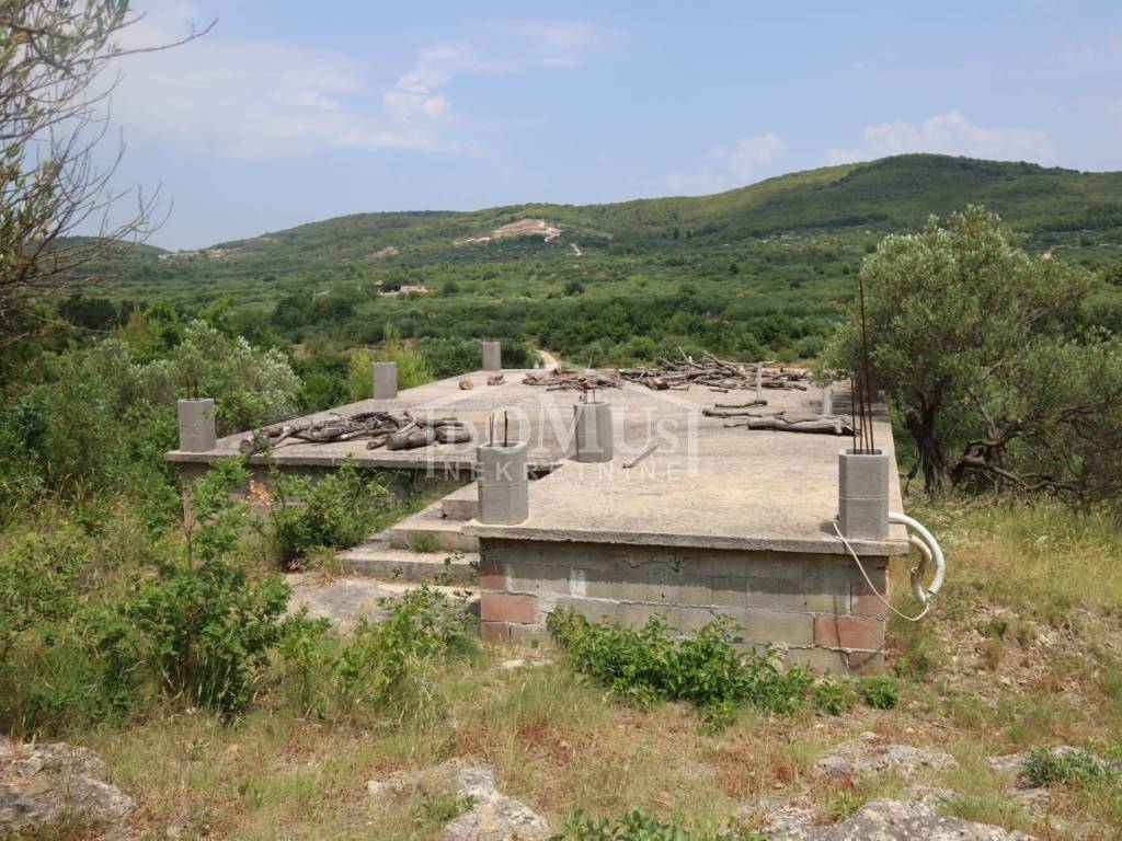 Sovlje, located 1,500 m from the village, is an unfinished detached simple house with a living area of approximately 65 m² in the basement, with a walkable flat roof, on a plot of 1,798 m². The house is legalized, has a septic tank, a water cistern and a booster pump (hidrofor), but no electricity or water from the public network. Public infrastructure, electricity, and water are located about 200 m from the plot. The plot has a gravel access road suitable for cars. The terrain is partially cleared, gently sloping, with low vegetation and about ten olive trees. The distance to the center of Sovlje and the sea is 1,500 m.