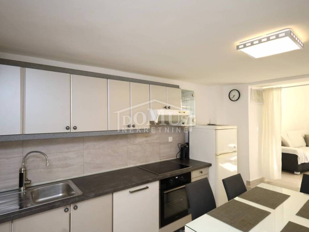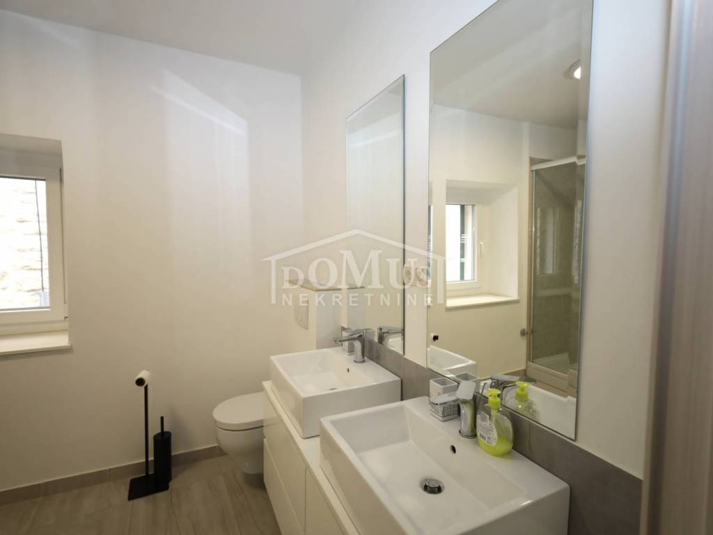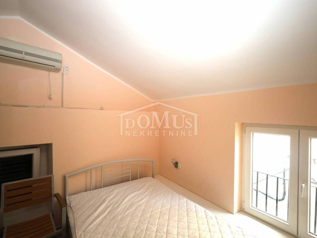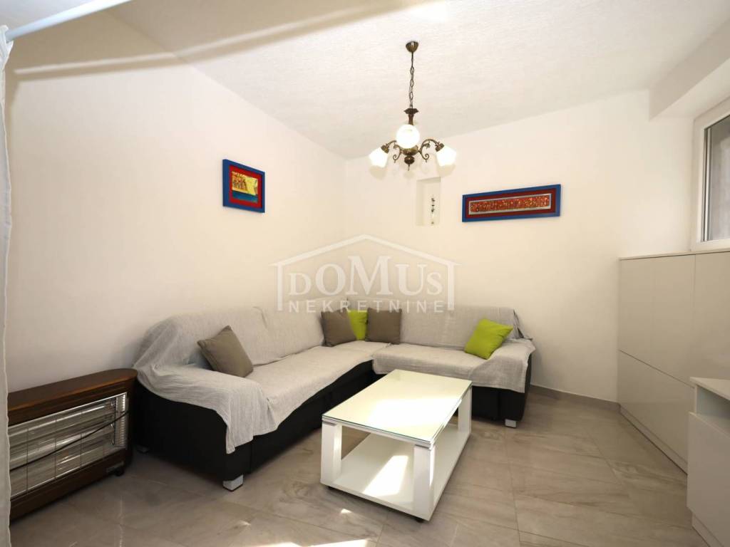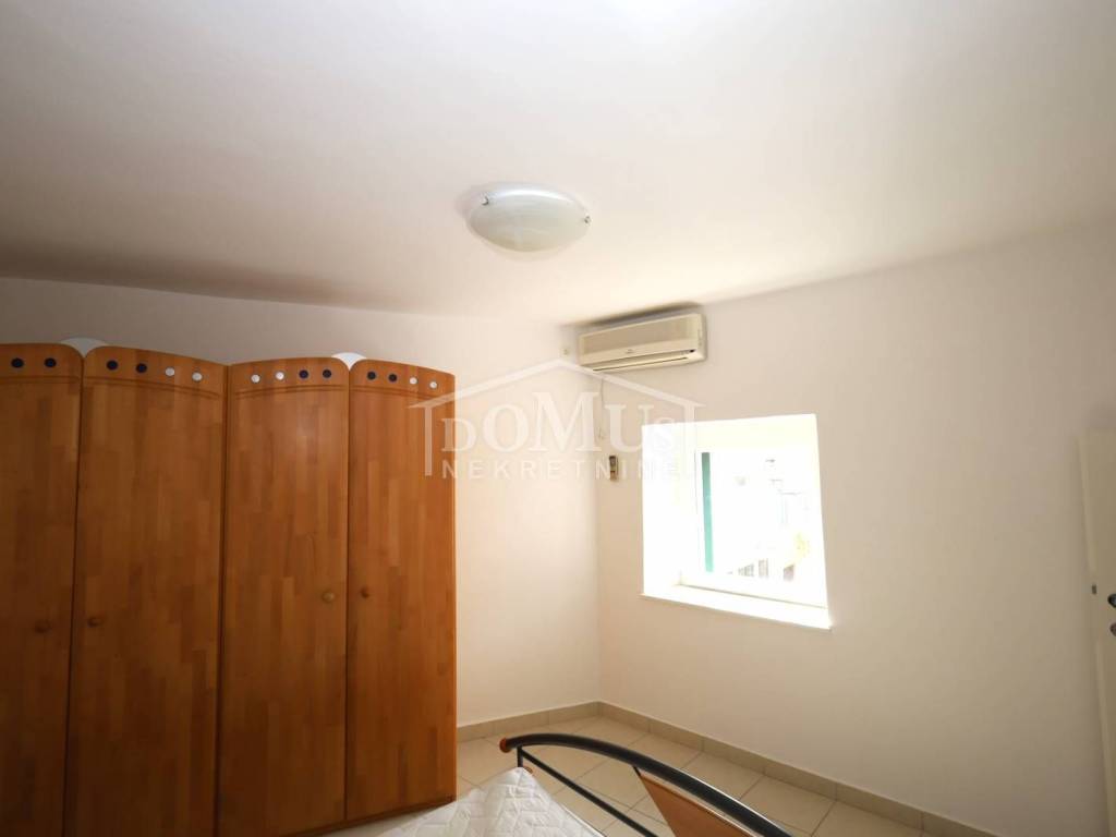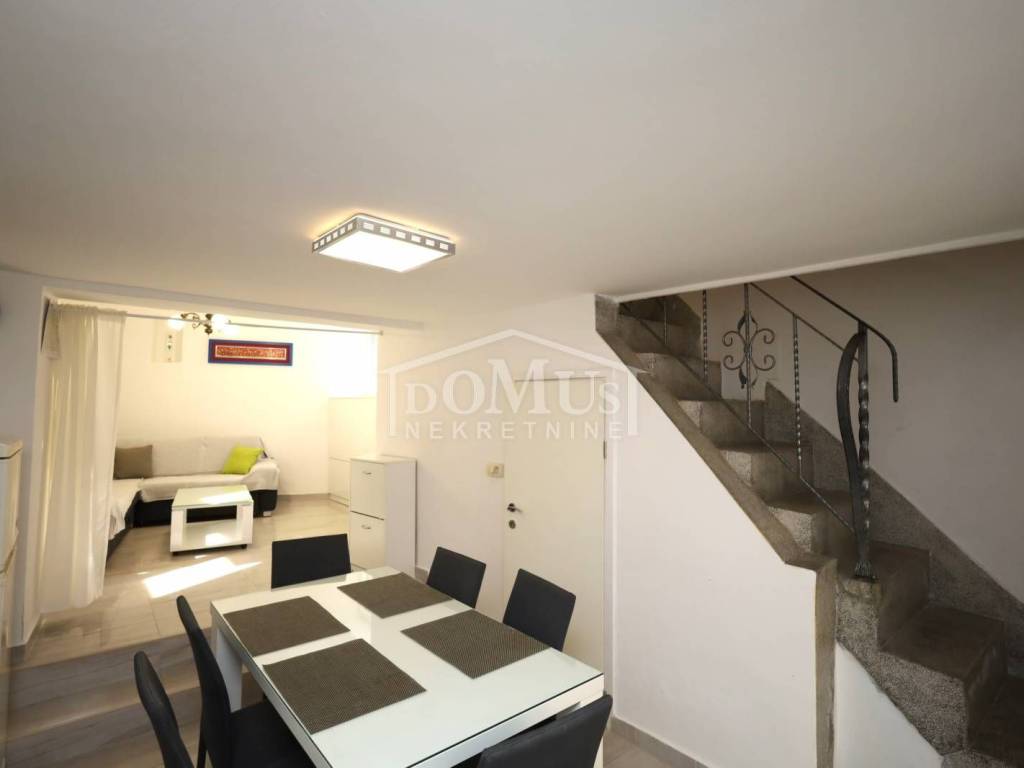 Tribunj, renovated stone house in the heart of the old town, on the island, just 30 meters from the seafront and the sea. The house has a total living area of 81.26 m², spread over three floors: ground floor, first floor, and second floor with a 15.76 m² terrace offering a view of the old center of Tribunj. On the ground floor, there is a kitchen with a dining area and a toilet. The first floor includes one bedroom and a spacious bathroom, while the second floor features another bedroom with a sauna and an uncovered rooftop terrace with an open view. The house is fully furnished and immediately ready to move into. It is equipped with air conditioners in all bedrooms and PVC windows with mosquito screens. Parking is available on a public area approximately 140 meters from the house.
