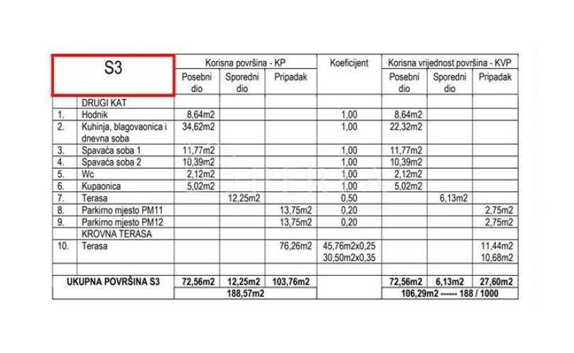 Apartment S3 on the 2nd floor - €515,000.00, net usable area 97.78 m2 (includes roof terrace 69.99 m2 with sea view)