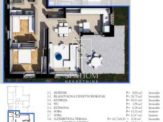 LABIN, we are pleased to present a modern and spacious apartment of 85.50 m², located on the ground floor of a high-quality urban villa consisting of three levels. The apartment is carefully designed to provide maximum comfort and functionality, and it consists of two bedrooms, a bathroom, an additional toilet, a hallway, and an open-concept living area that combines the kitchen, dining room, and living room with access to a covered terrace. Thanks to large glass walls, the space is filled with natural light, creating a pleasant atmosphere throughout the day. Durable and high-quality materials are used, and the project is designed to meet the highest standards of modern living. Planned construction completion is in June 2027, while handover is scheduled for December 2027.