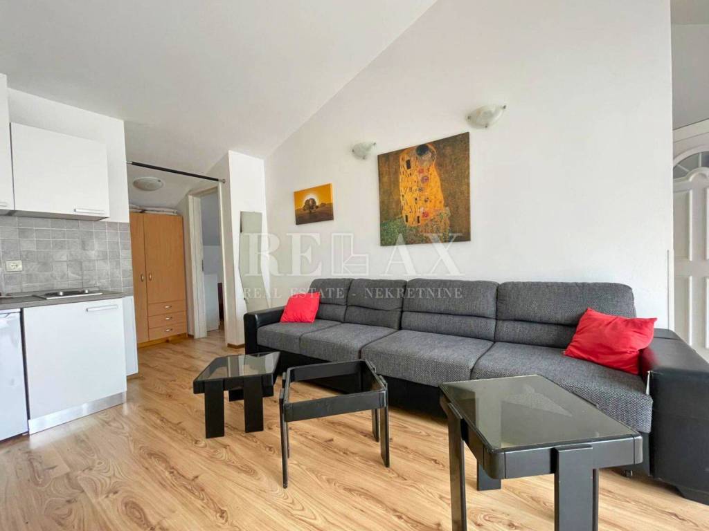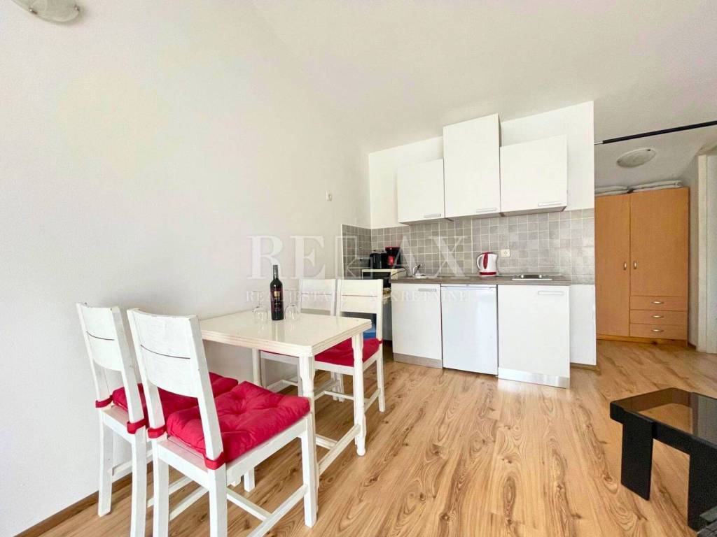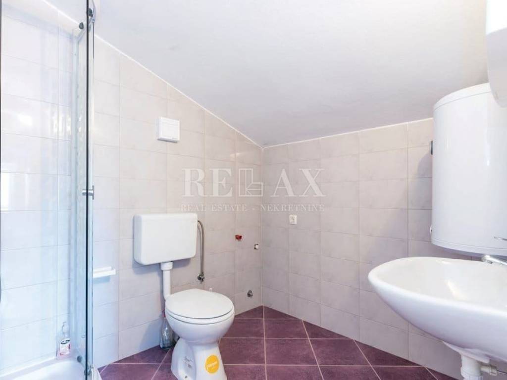 The attic apartment features a living area, a dining area, and a kitchen in one space, a bathroom, one bedroom, and a rooftop terrace with an impressive view of Vinodol.
