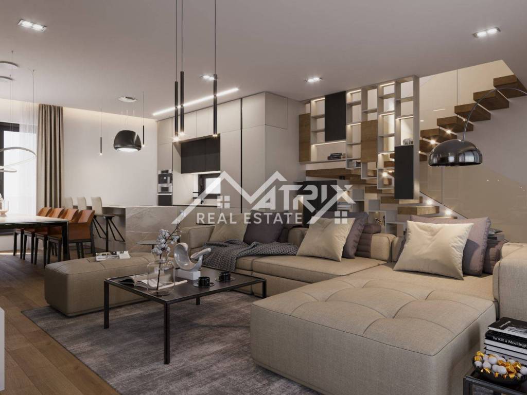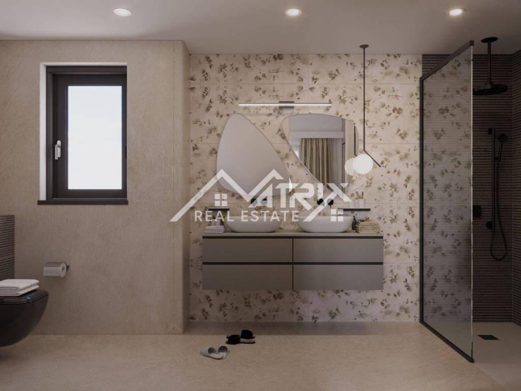 The villa is designed with a modern interior and a well-thought-out layout. The basement includes a wellness and spa area, ideal for relaxation and enjoying the privacy of your home. The ground floor features a spacious open-plan living room, kitchen, and dining area, offering comfort and an airy ambiance. An elegant staircase leads to the first floor, where there are four bedrooms, two of which are master suites, each with its own en-suite bathroom.
