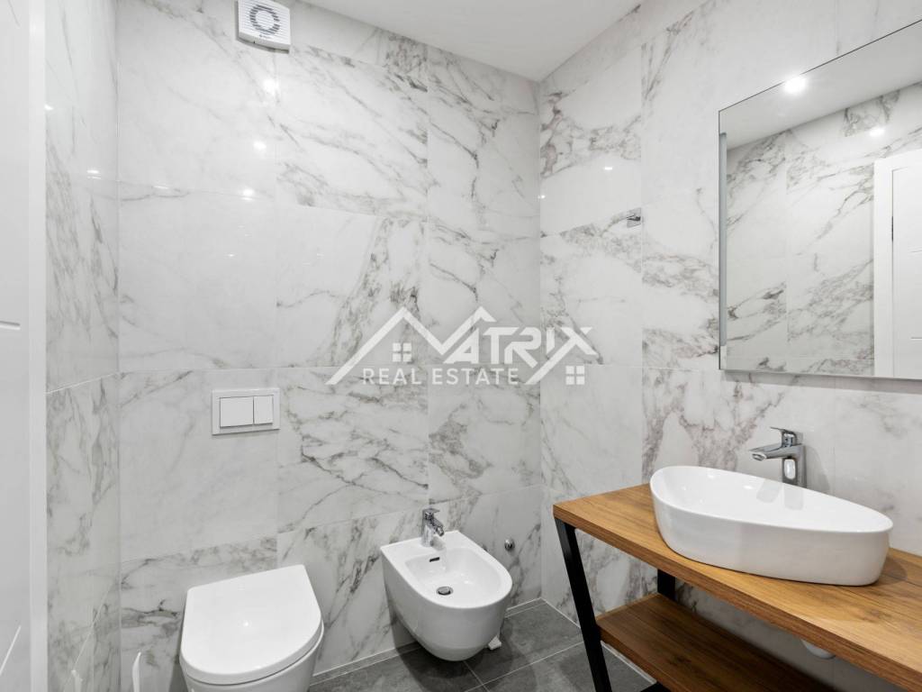 The apartment is fully modern and stylishly furnished and is being sold as such. For year-round comfort, there is underfloor electric heating, while each room is equipped with air conditioning units. High-quality PVC windows come with electric shutters for additional convenience and protection.