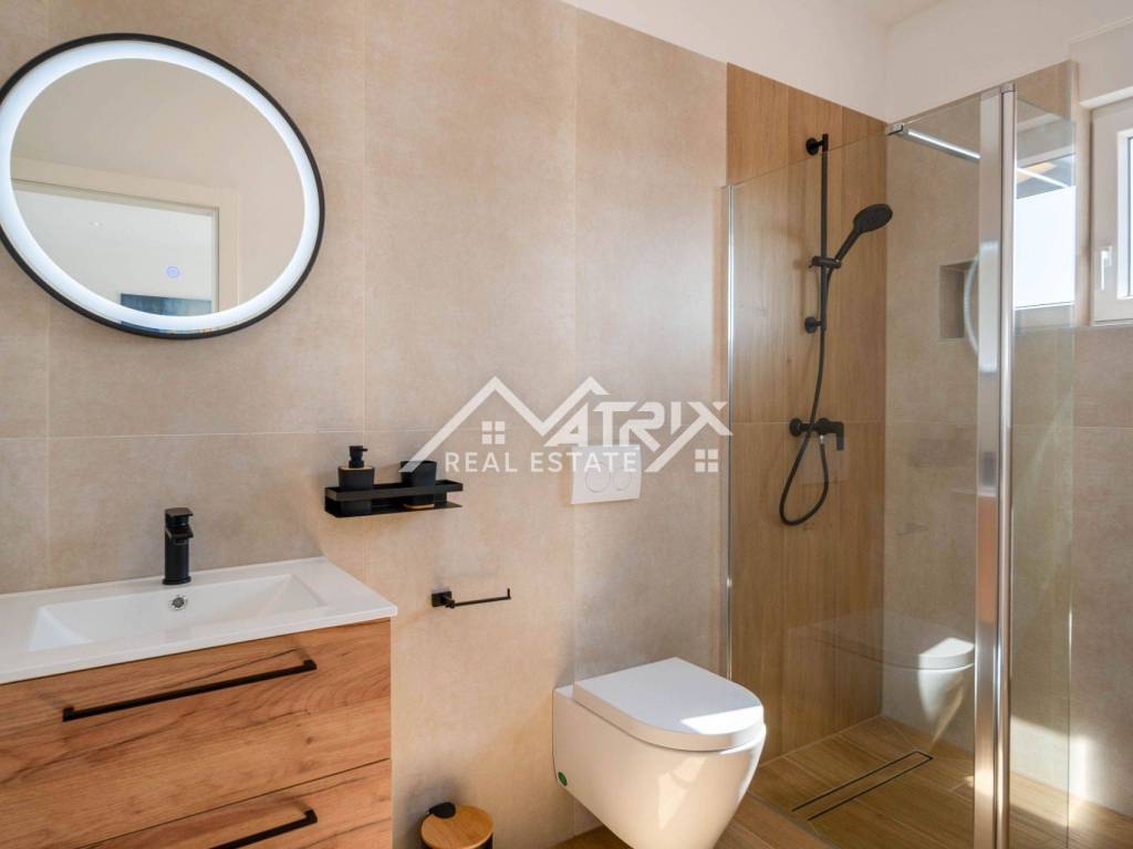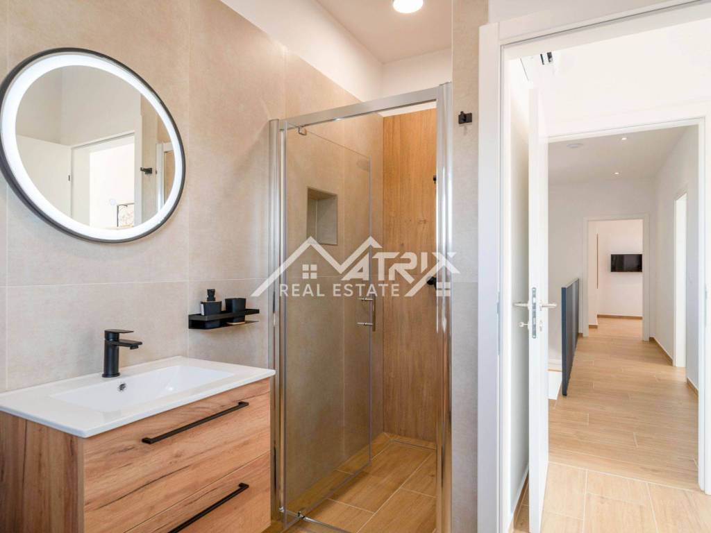 Upstairs, there are three beautifully appointed bedrooms, each with its own bathroom. One of the bedrooms even has its own terrace, while two bedrooms share a spacious terrace with stunning views.