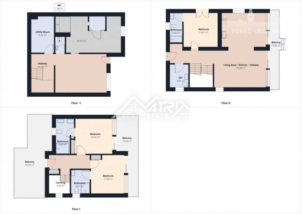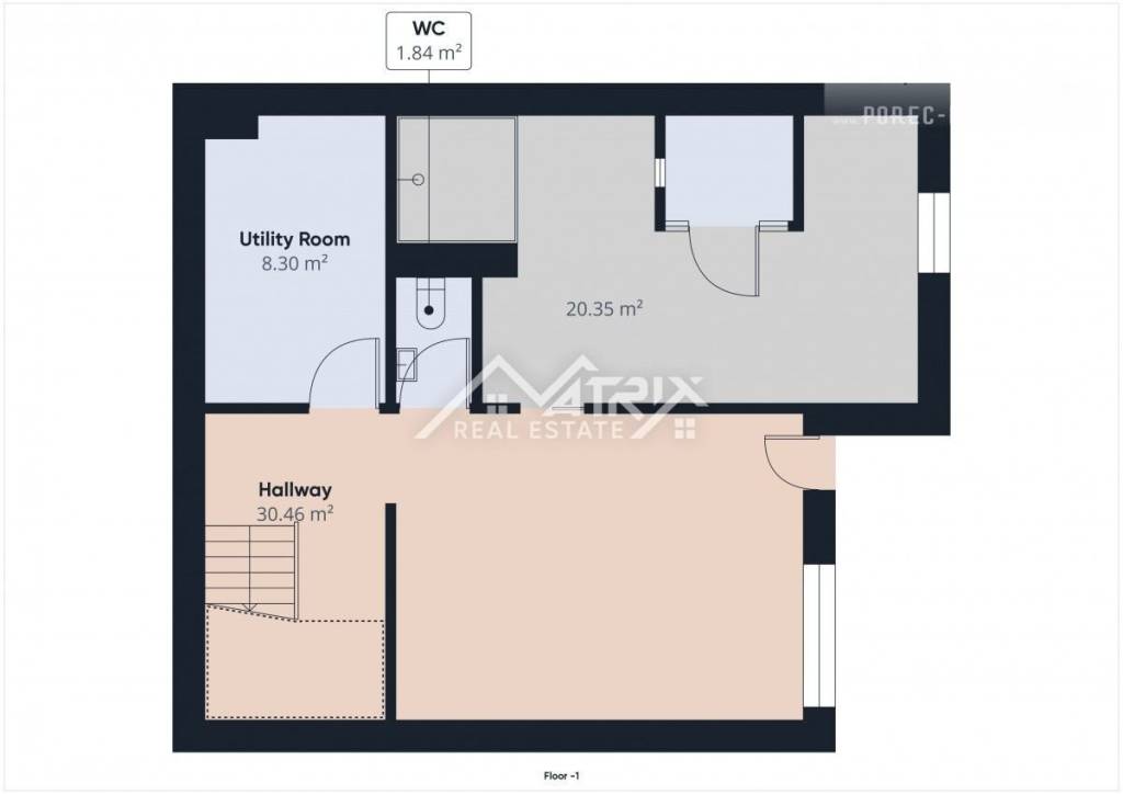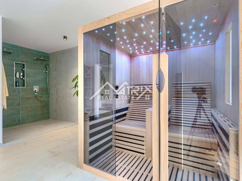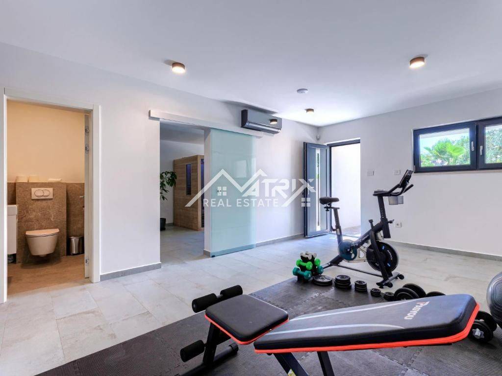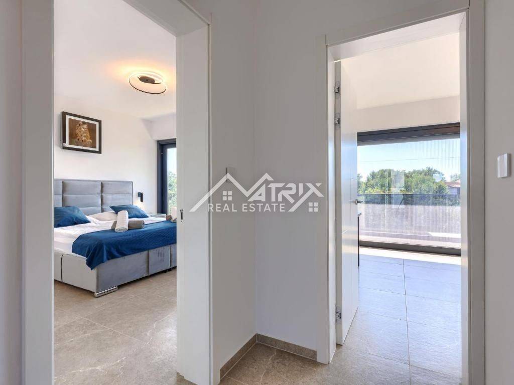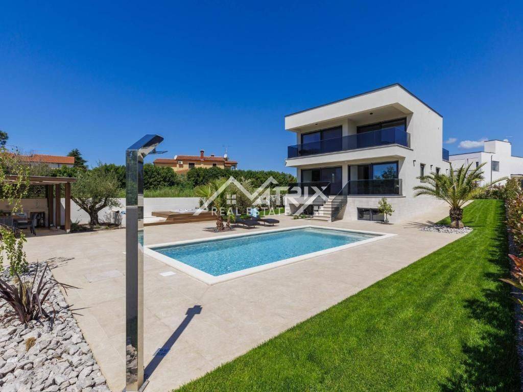 Just a few minutes from the centre of Poreč and only 2 km from the sea, this brand-new modern villa of 217.43 m² net surface is for sale. The property offers beautiful views of greenery and forest, and is situated on a plot of 707 m².