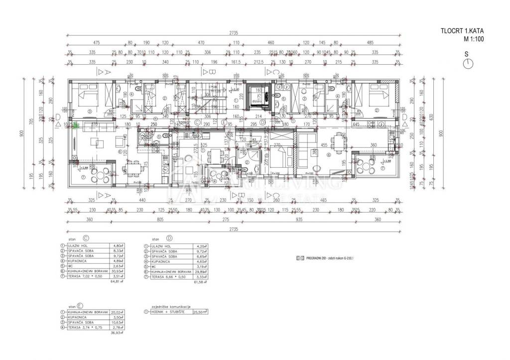 Apartment C is located on the first floor of the building and has a total area of 64.81 m².