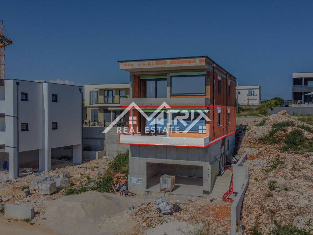 This modern apartment on the first floor is located in the prestigious Mukalba area of Medulin, offering a beautiful sea view from the terrace. The location combines peace and privacy with easy access to beaches, restaurants, and all local amenities, making it ideal for permanent residence or investment.