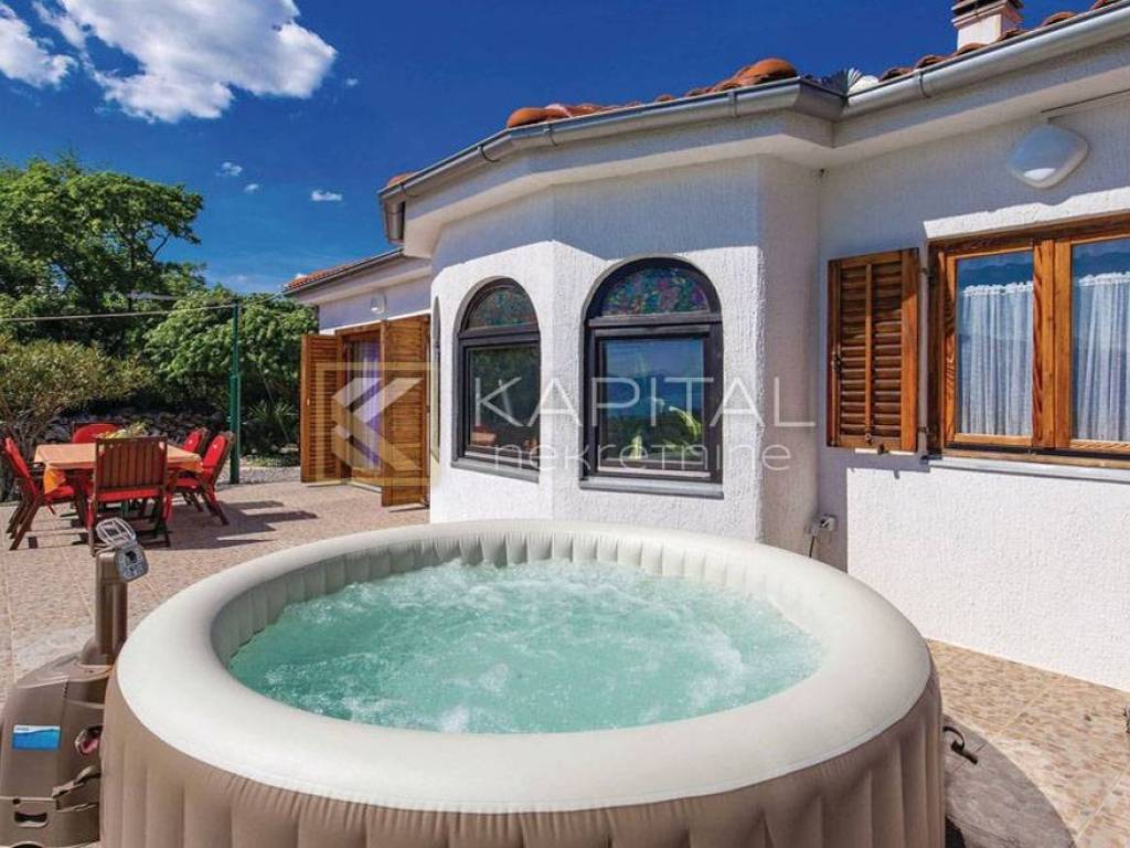 Marinići excellent house P 1 with panoramic sea views. On the ground floor is a large garage and tavern, and on the first floor of 115 m2 3s db with a large terrace. The floors are connected by an internal staircase, but they also have separate entrances. The lower part is solid construction, and the upper is prefabricated. The house was completely renovated in 2014 and is used as a holiday home. The garden is completely decorated. Neat documentation. For all information call 091 / 450-5150
