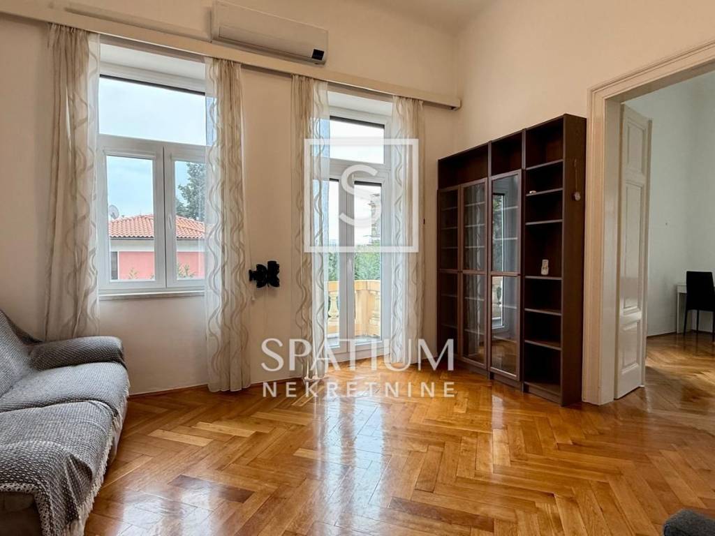 OPATIJA, we have received a two-bedroom apartment of 99.36 m², located on the first floor of an Austro-Hungarian villa in the very center of the city. It consists of an entrance hall, kitchen with dining area, living room with access to a balcony, two bathrooms and two spacious bedrooms.