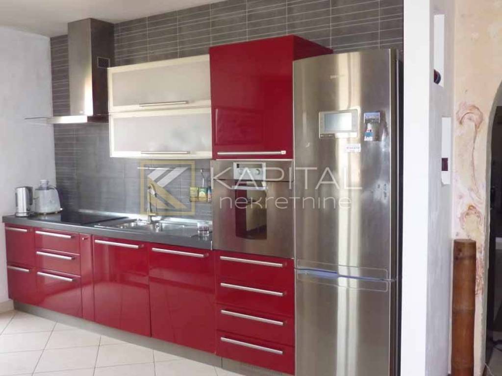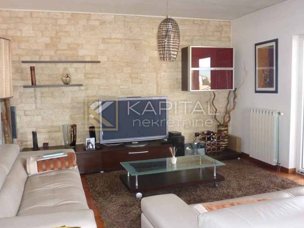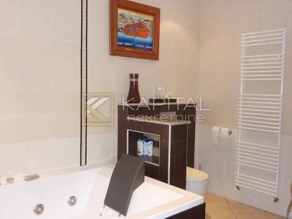 Rijeka, Turkovo luxury floor of an urban villa on the second floor in a quiet cul-de-sac. The floor is spread over 204 m2. It has its own garden with two parking spaces of approximately 150m2, basement of 22m2. A property that exudes luxury and quality. Each room is very comfortable, equipped with designer furniture and top quality materials. 3 bedrooms (30 m2, 18 m2, 10 m2), two bathrooms, a large hallway with fitted wardrobes and a one-room large living room with kitchen and a spacious loggia of 15 m2 with a view of the entire Kvarner. Central heating and air conditioning. All fixed pieces of furniture and equipment remain in the price. A rarity in real estate! For all information call 091 / 450-5150.