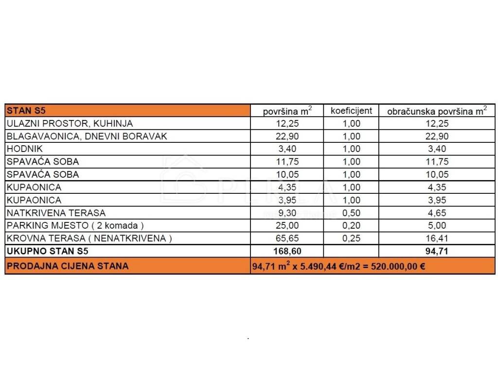 Apartment S5 - €520,000.00, net usable area 94.71 m2 (roof terrace 65.65 m2 and 2 parking spaces)