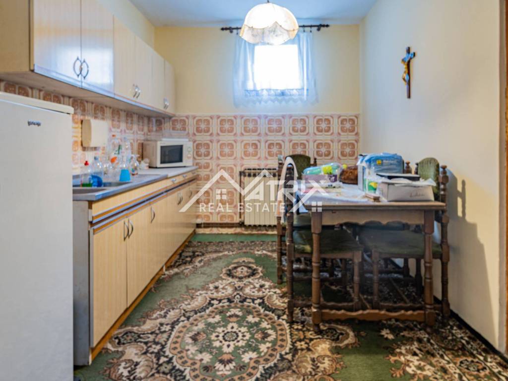 For sale is a family house in a quiet part of Vinkovci, built in 1978, offering a total of 150 m² of living space. The house features three spacious rooms, a kitchen, and a bathroom, with a basement extending under the entire property, ideal for storage or hobby use. The plot includes a garage, wood storage, and utility room, while the yard provides plenty of space for family gatherings and relaxation. The attic remains unfinished, offering great potential for additional living space. This property is an excellent opportunity for families seeking a peaceful location with room for customization.