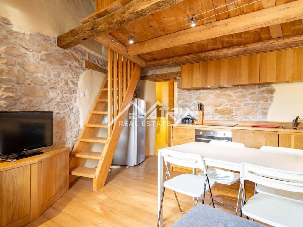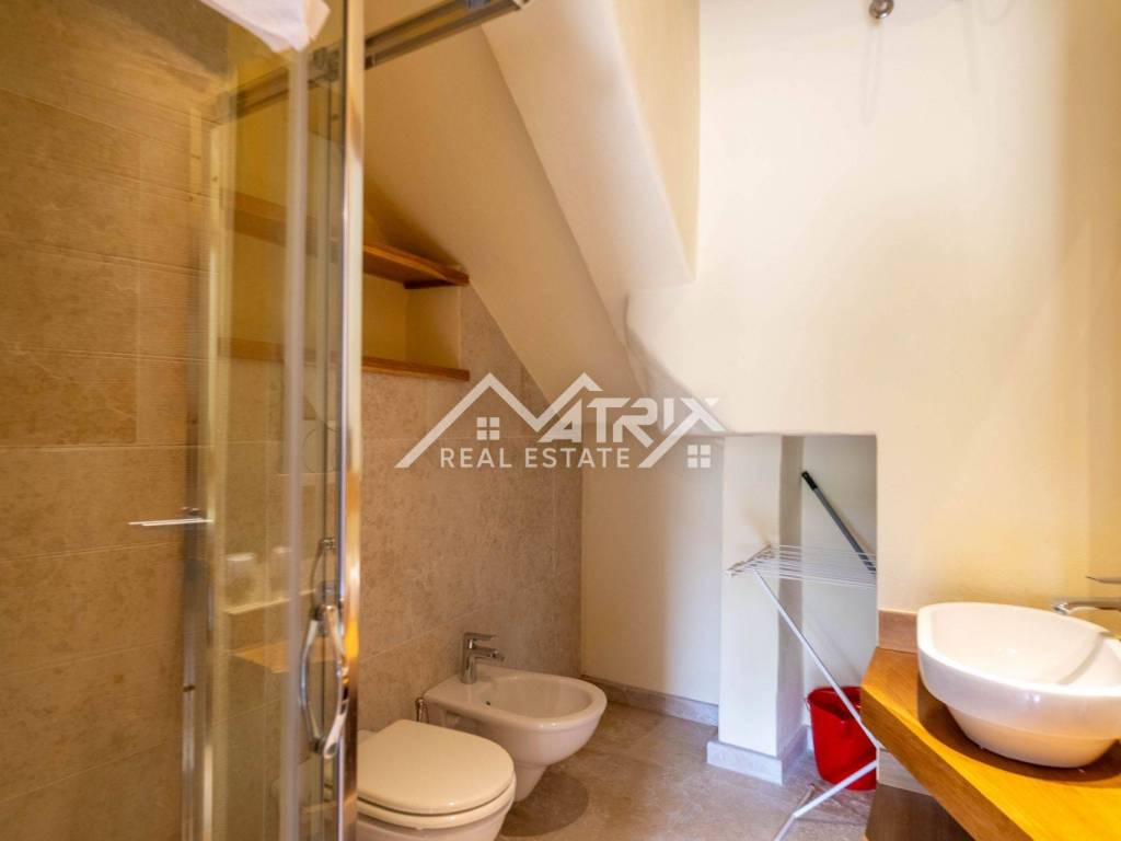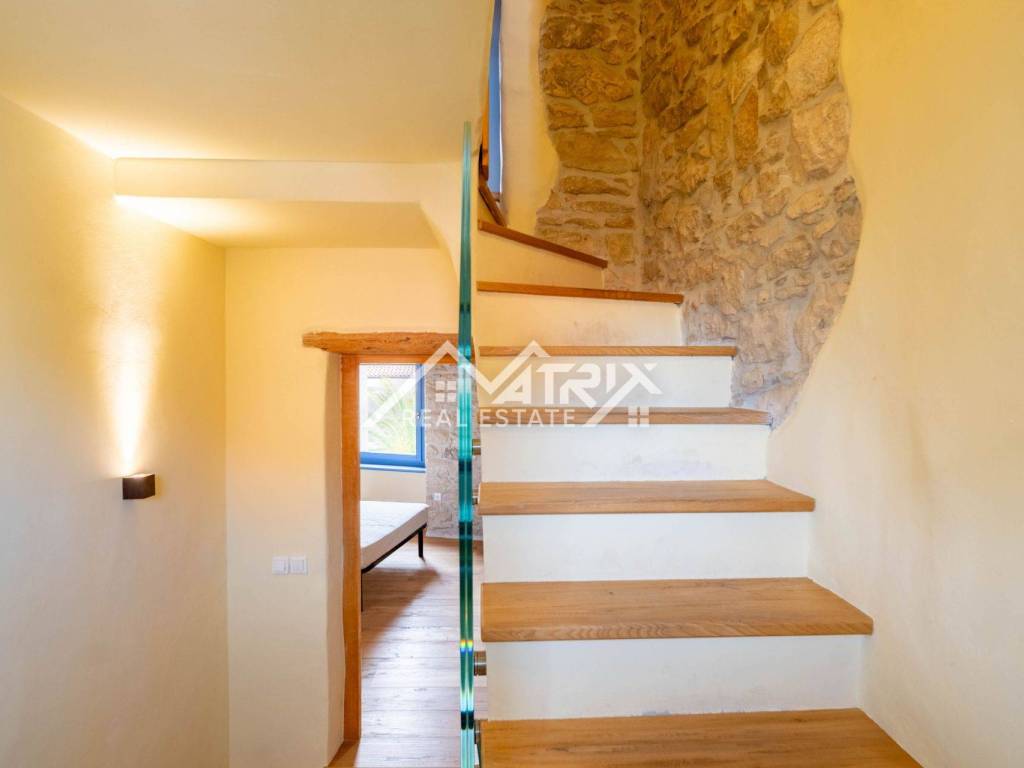 The ground floor of the house includes a studio apartment with a separate entrance, providing privacy and comfort. The larger apartment extends to the first floor, where there is a bedroom, and to the second floor, where there is a living room, kitchen, bathroom, attic and a terrace with a beautiful view of the place and the surrounding landscape, while on the other side it offers a view of the sea. The house was thoroughly renovated in 2012 and is equipped with all modern conveniences. The heating is solved with air conditioners, and the house is sold fully furnished, offering immediate occupancy or the start of tourist rental.