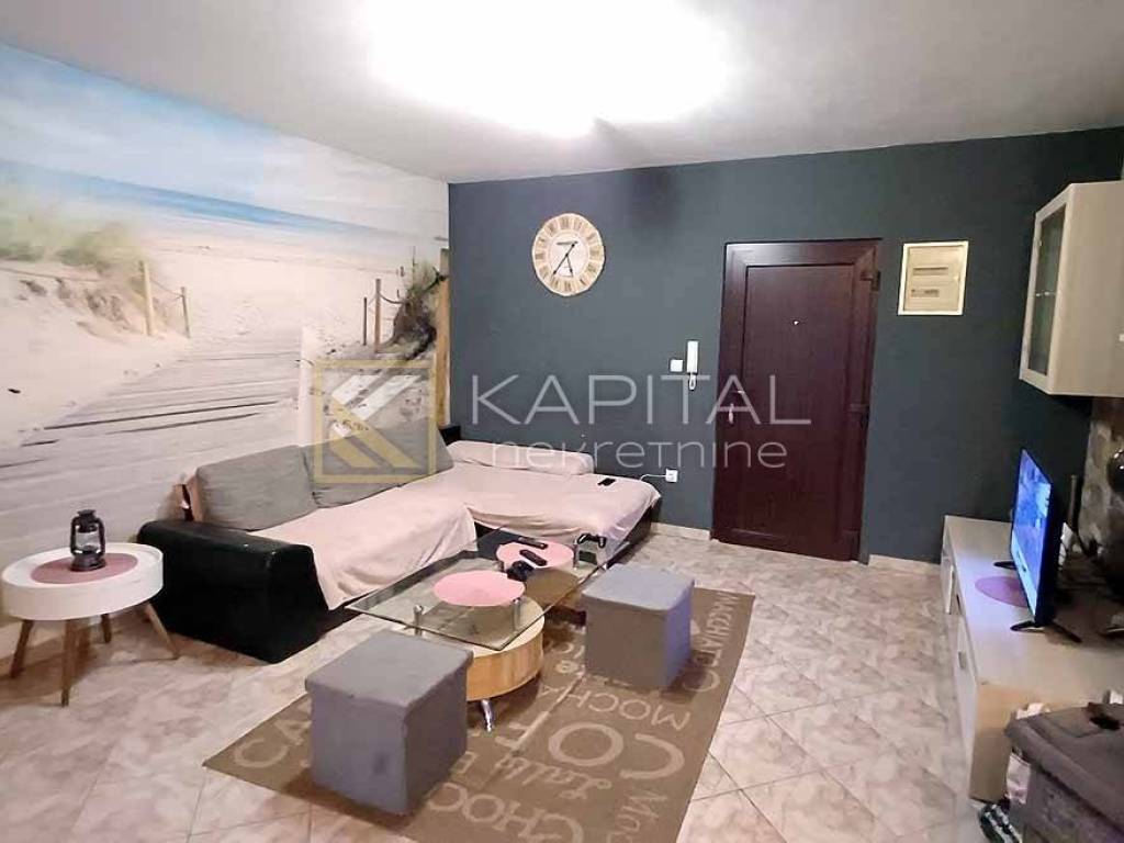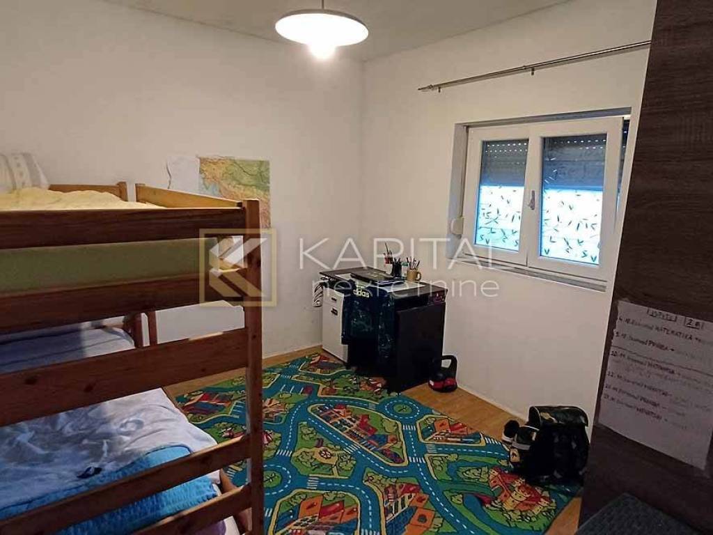 An apartment for sale, in the building, which consists of a kitchen and dining room with a living room, two bedrooms, a bathroom and a loggia. The apartment is currently under renovation. It has a terrace of about 50 m2 and a parking space in front of the building. Regulated reserve. A quiet neighborhood surrounded by houses and landscaped yards. 3.5 km to the sea and beaches, and other facilities. For all information, call 091/540-6611