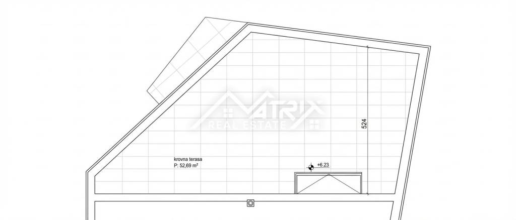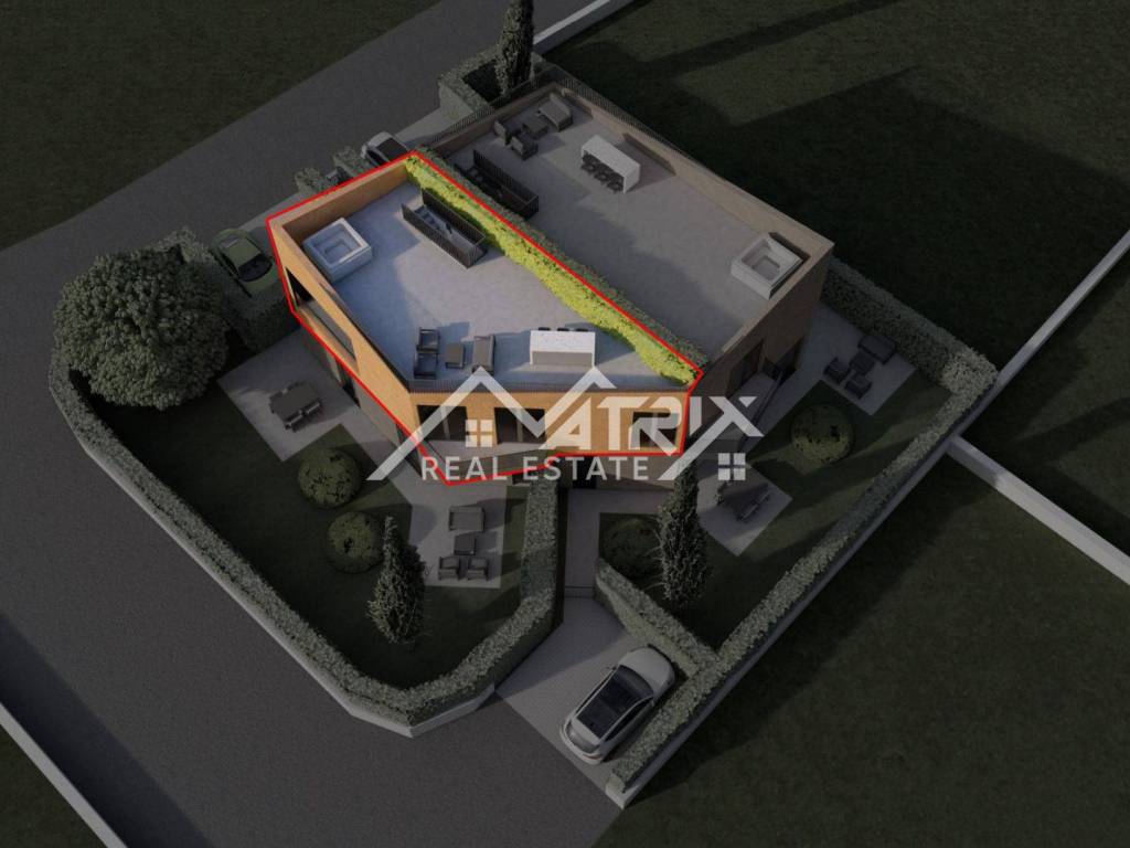 Located in a quiet neighbourhood near Poreč, this modern Apartment No. 5 is situated on the upper floor of a high-quality new building with just five residential units. With a total chargeable area of 77.47 m², it offers an excellent layout and spacious outdoor amenities.