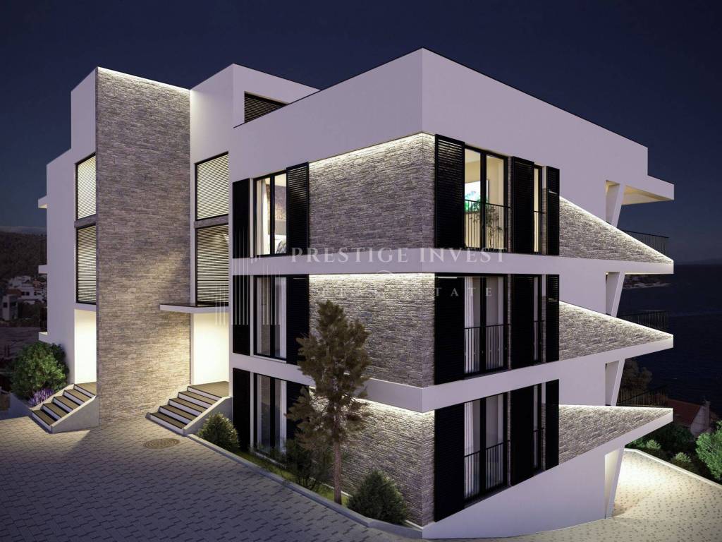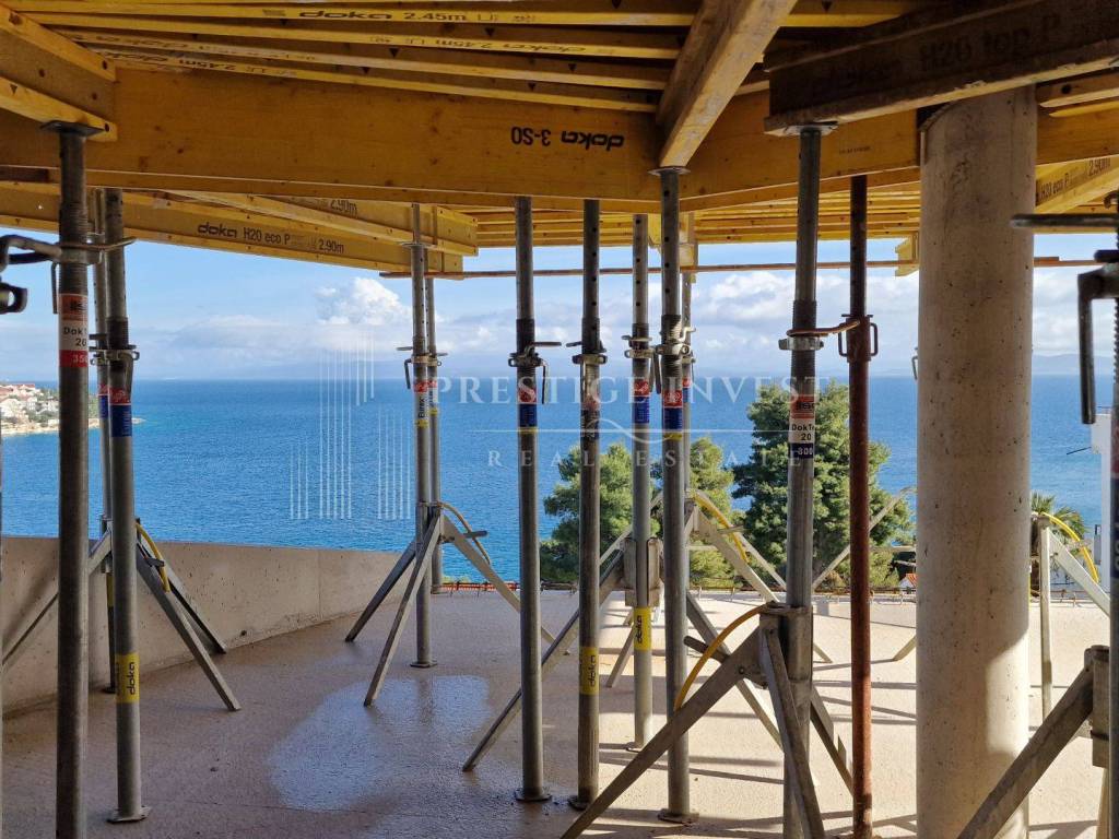 Penthouse for sale on the 2nd floor of the building with a roof terrace of 89m2, 3rd row to the sea, area of ​​103 m2, exclusive location in Okrug Gornji just 90 meters from the beach, with a beautiful view of Brač, Šolta and Hvar. The building is located in a quiet location - panoramic sea view.