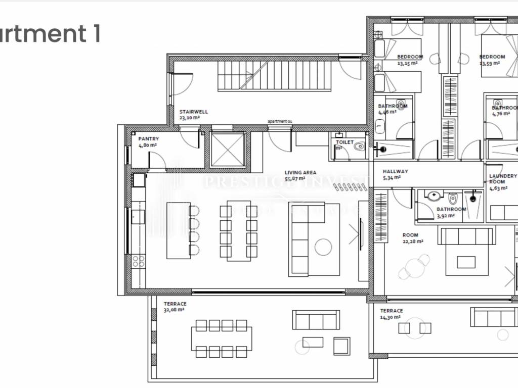 1. Floors: All floors are equipped with top-quality large-format ceramic tiles (240x120 cm) from the Italian brand Teuco