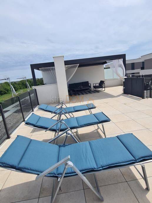 Three comfortable bedrooms Two modern bathrooms Loggia Large open roof terrace (approx. 70 m²) equipped with a bioclimatic pergola and glass fence, ideal for enjoying the view and socializing The villa is sold fully furnished with quality furniture, providing you with everything you need for a comfortable life or a successful tourist business. Don't miss the opportunity to become the owner of this beautiful property in Štinjan!