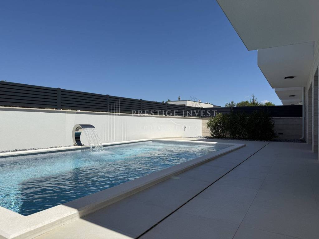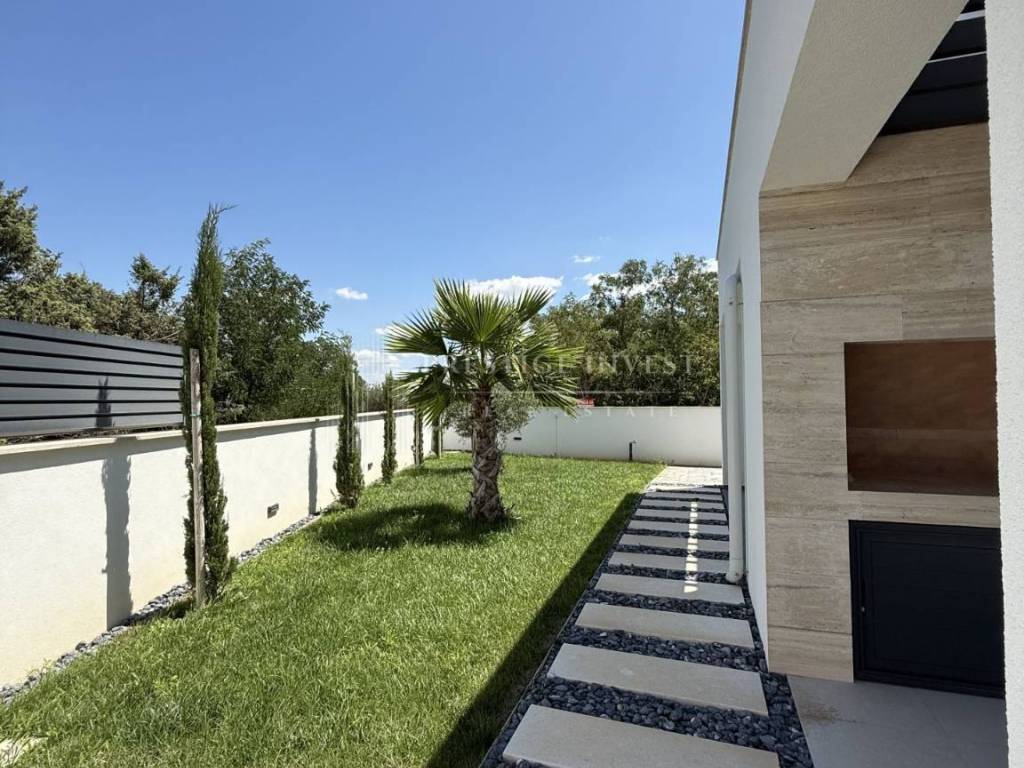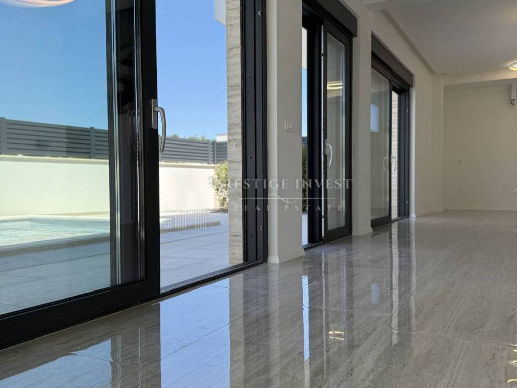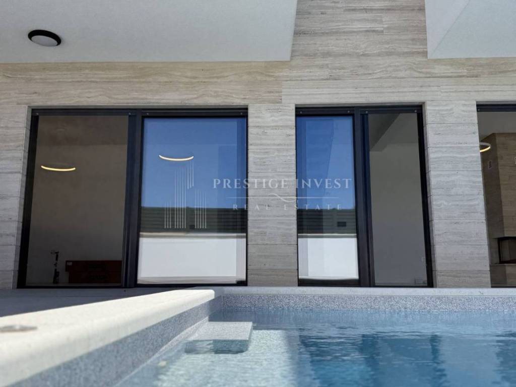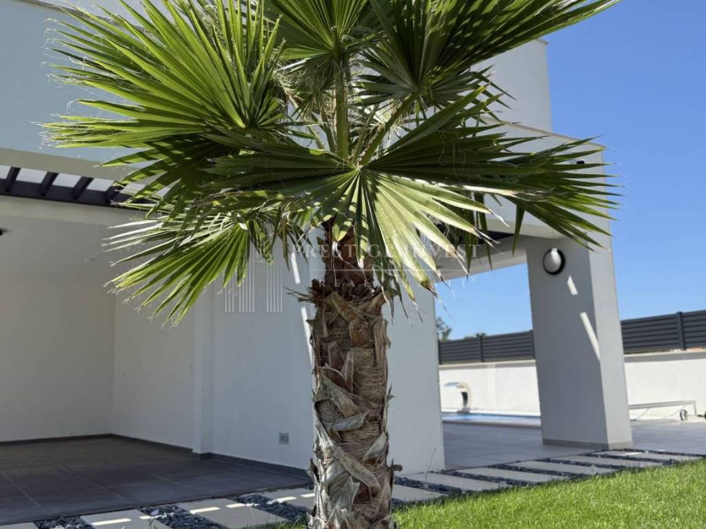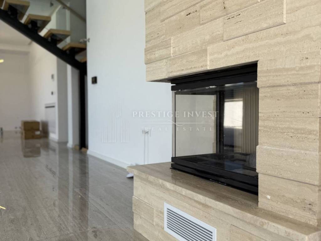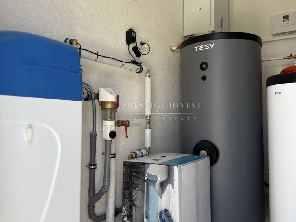 Property specifications: - Hansgrohe sanitaryware - water underfloor heating throughout the villa - Vaillant - additional: indoor fireplace - parquet and ceramics - travertine stone - aluminum three-layer joinery filled with gas - each room has an additional air conditioning unit - video surveillance - sliding entrance door - intercom - water softener