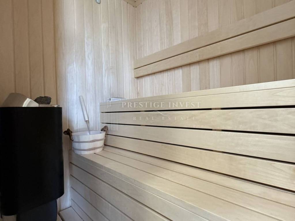 Residential area: Heat pump machine room Living room/dining room/kitchen (kitchen island installations) hallway, internal stairs 1 WC Wellness area: gym with sauna and shower