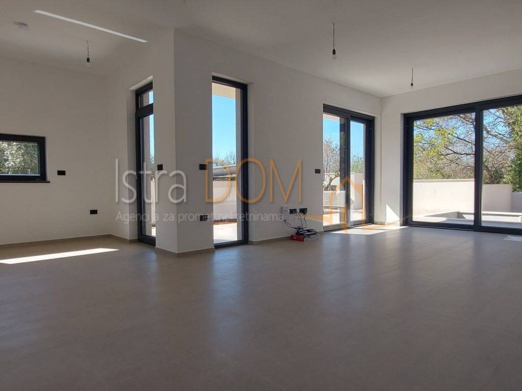 The ground floor is characterized by an open concept that connects the kitchen, dining room and living room, creating the perfect place for family gatherings and socializing. Large glass windows allow for plenty of natural light and provide direct access to the outdoor area with a swimming pool. Upstairs there are three comfortable bedrooms, each with its own bathroom, which guarantees privacy for all family members or guests. Two bedrooms share a spacious terrace, ideal for enjoying morning coffee or evening relaxation. Each room is equipped with air conditioning.