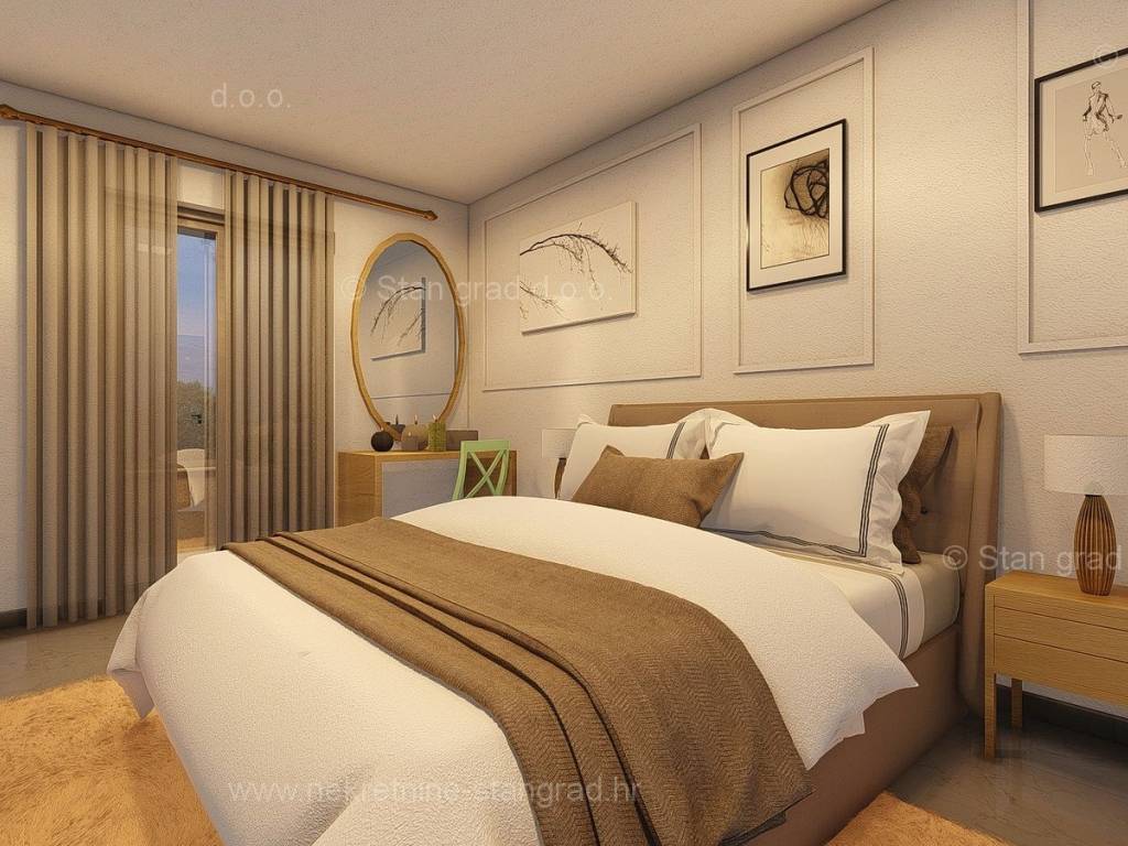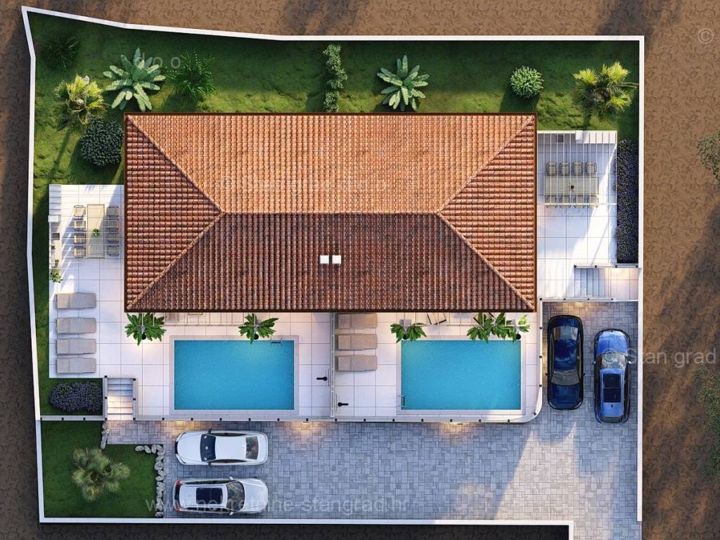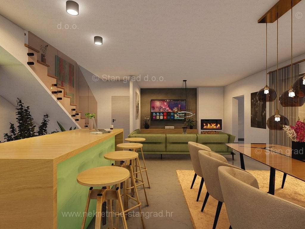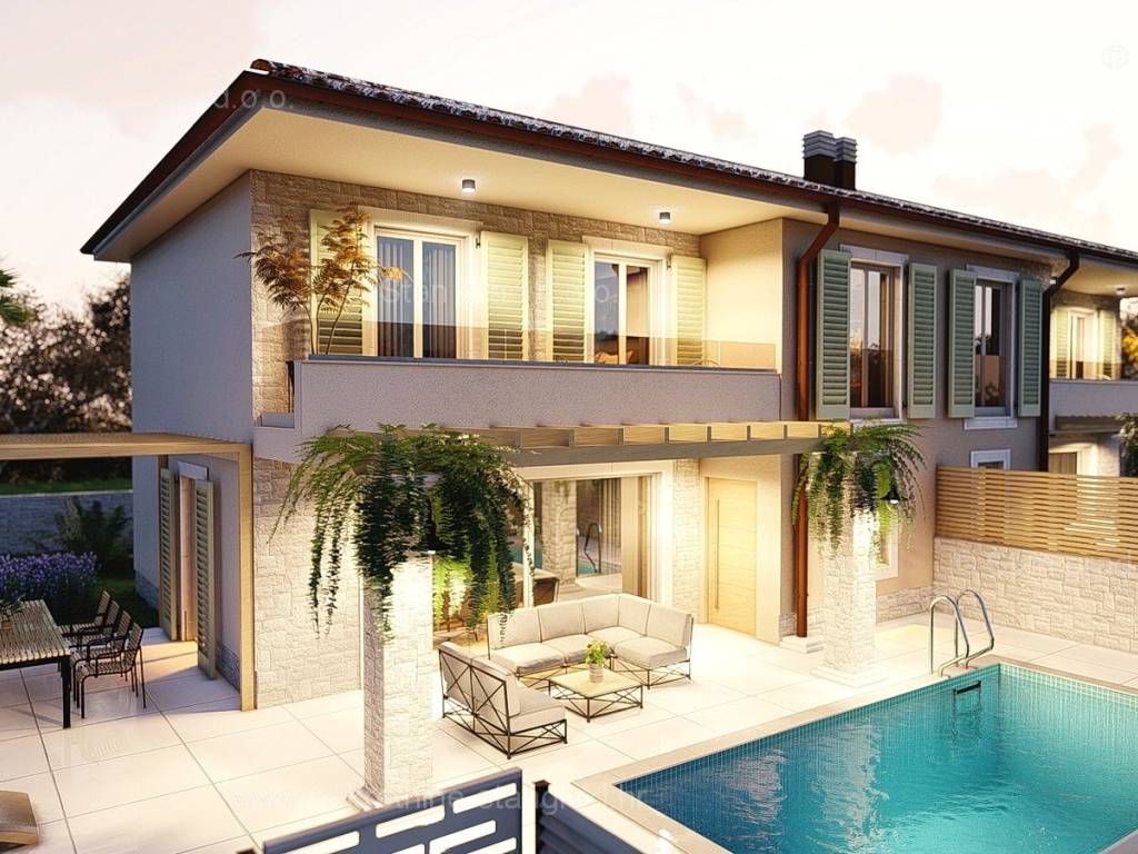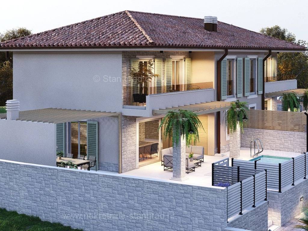 In the real estate offer of the agency Stan Grad Immobilien in the Croatian coast, on the island of Krk, there is a very attractive house perfect for a tourist stay and vacation or living on the coast of the Adriatic Sea. The prominent house is located in a nice location not too far from the center of the famous town of Malinska. The modernly designed house includes useful space on a total of 2 floors, ground floor and first floor. The property covers a total area of 139 m2. The mentioned area contains the entrance area, open space living room with kitchen and dining room, bathroom and large terrace on the ground floor, and on the first floor there is a hallway, bedroom, bathroom and two more bedrooms, each with its own bathroom and balcony. The property has a well-kept garden with a swimming pool, an outdoor shower, a sundeck and a summer kitchen. Two cars can be comfortably parked in the garden of the described property. In addition to all of the above, it is important to say that the house has a good view of the sea and the coast. The real estate in question is owned by a legal entity and in the VAT system. The real estate seller guarantees a quick transfer of ownership rights and proper ownership and technical documentation. Contact us in person or by phone, we will try to answer all your questions. In addition to the presentation of the real estate and its legal status and conducting negotiations with the real estate agent, our expert team will assist the buyer in transferring ownership of the house and transferring bills for electricity, water supply and utility services to his name.