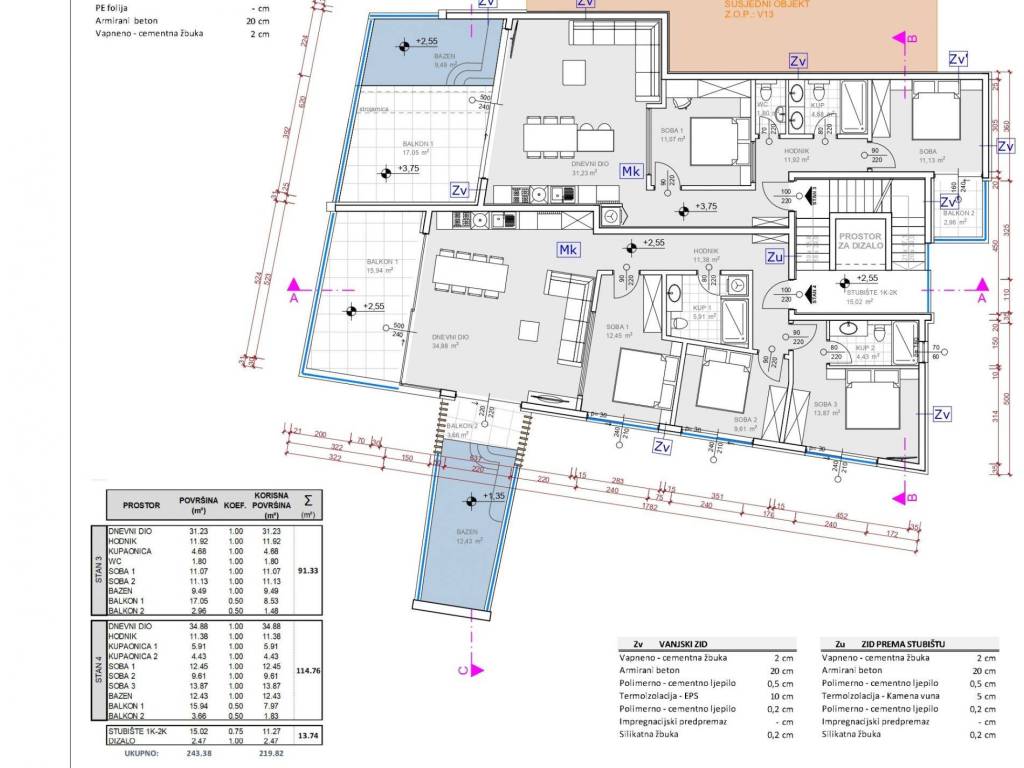 For sale is an exclusive three-bedroom apartment on the first floor with a usable area of 114.76 m², located in a unique building just 20 meters from the sea in Grebaštica, near Šibenik. Within a radius of 80 km, there are two international airports, Split and Zadar. This new construction project is a true rarity on the market, offering luxury and comfort at the highest level. The apartments in this building provide unobstructed panoramic views of the sea and surrounding islands, and each apartment has its own private pool, ensuring a unique experience.