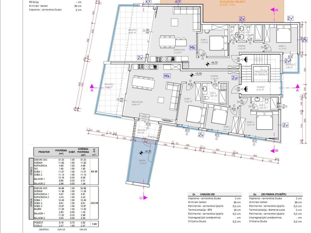 For sale is an exclusive two-bedroom apartment on the 2nd floor with a usable area of 82.30 m², including a rooftop terrace and pool, located in a unique building just 20 meters from the sea in Grebaštica, near Šibenik. Within an 80 km radius, there are two international airports, Split and Zadar. This new construction project is a true rarity on the market, offering luxury and comfort at the highest level. The apartments in this building provide unobstructed panoramic views of the sea and surrounding islands, and each apartment has its own private pool, ensuring a unique experience.