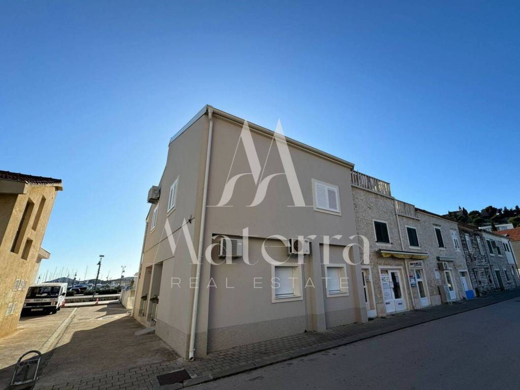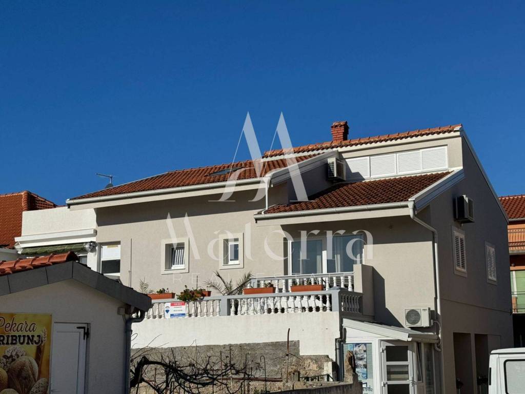 For sale is a spacious house with 3 apartments + business space in the center of Tribunj, just 70 meters from the waterfront. All necessary amenities such as shops, restaurants, and a marina are in close proximity. The house is well-maintained and has great potential due to its attractive location. The ground floor can be converted into a large business space, which would provide a steady income for the future owner. The house is connected to the sewage system. There is parking available for the house residents, with a dedicated parking space for the summer months.