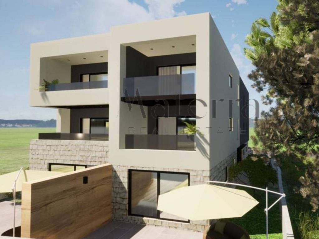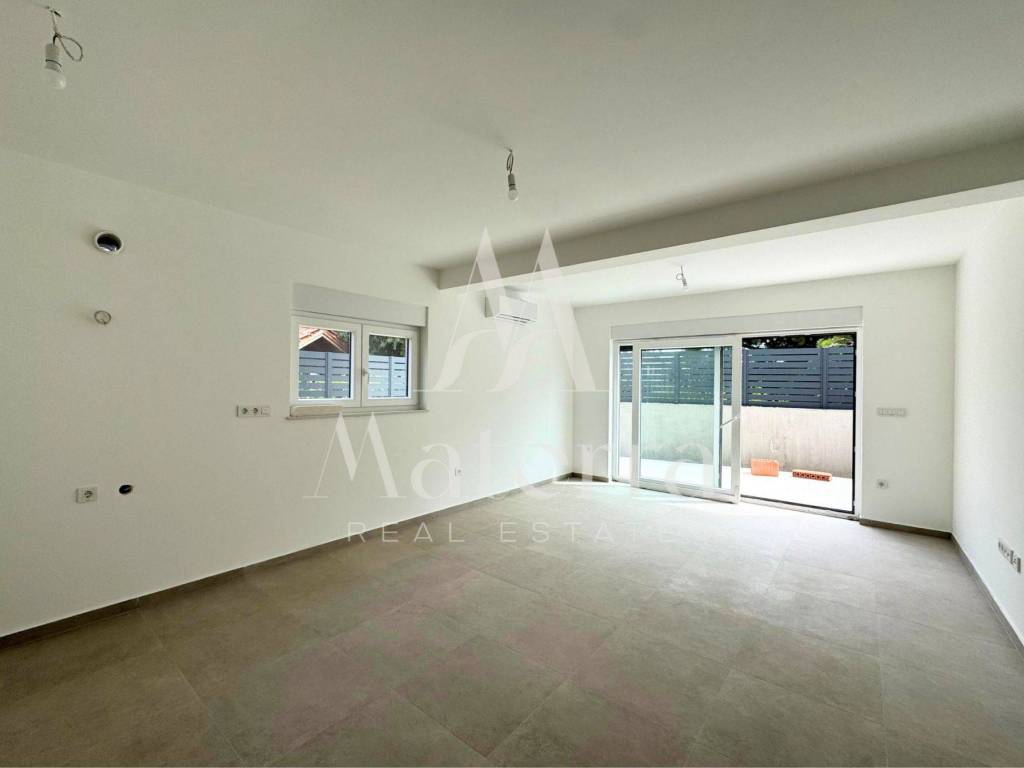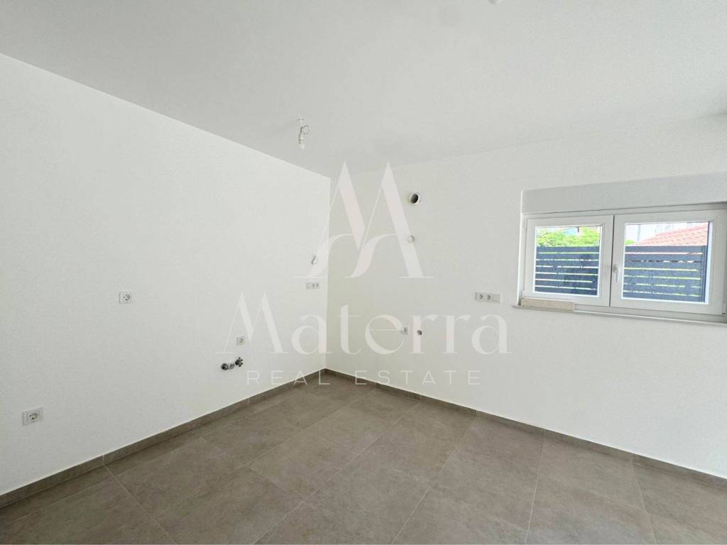 An attractive two-room ground-floor apartment in a newly constructed building, with a floor area of 87.54 m², located in a quiet part of Žaborić, just 150 meters from well-maintained sandy and pebble beaches. The apartment comprises an entrance hallway, two bedrooms, a modern bathroom, an open-plan living room, kitchen and dining area, plus a large covered terrace and an adjoining garden. One designated parking space is included. Shops, cafés, restaurants and beaches are all within easy walking distance.