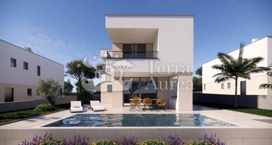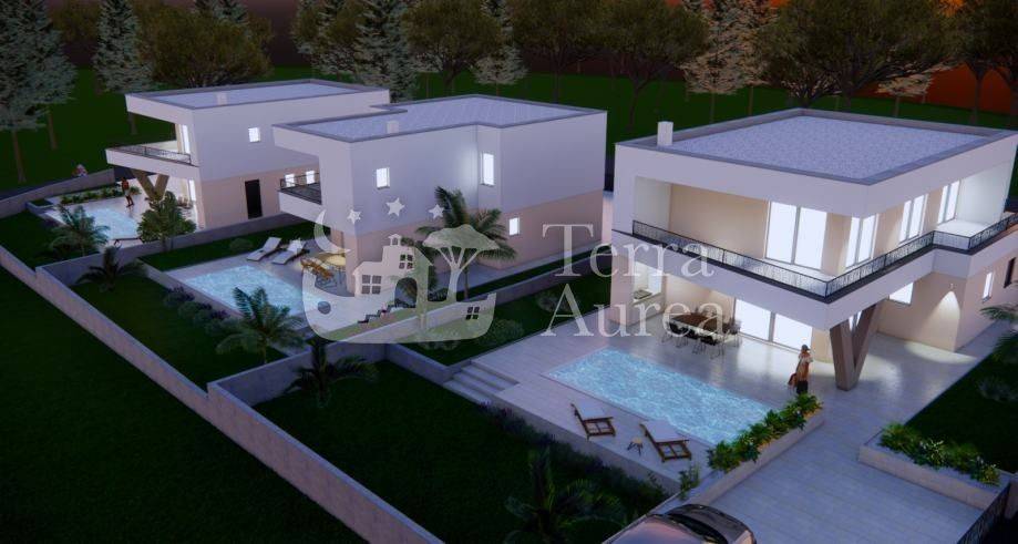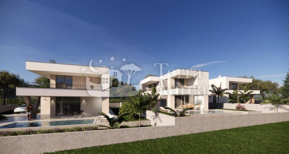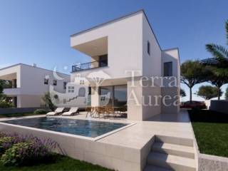 In the very quiet town of Brzac on the island of Krk is located this luxury property of modern design, which includes a living space of 164.80 m2. The villa exudes a modern interior and an even more beautiful exterior. It extends over two floors, the ground floor and the first floor. On the ground floor there is a living room with a kitchen, a bedroom with its own bathroom, a toilet, a practical storage room for things that are not in daily use, an entrance area and a covered terrace that is ideal for drinking morning coffee. The interior design of the property is striking and original, but not intrusive - neutral shades prevail and the decoration itself gives the impression of simplicity and airiness. Internal stairs lead to the first floor where there are three bedrooms, 2 bathrooms, a wardrobe and a covered terrace with a panoramic view of the crystal clear sea. The property is characterized by top quality ceramics, carpentry and sanitary ware. All rooms are air-conditioned and the property has underfloor heating and video surveillance. Possible installation of additional equipment (FNE power plant, pool heating, sound system). In the outer part of the villa there is a pool where you can refresh yourself every day while enjoying complete privacy. The property includes 2 parking spaces in the garden area of 426.25 m2. The project is excellent, the villa is well designed, the layout of the rooms is functional and it is located in a very quiet and interesting location. A real estate that leaves you breathless is a great investment opportunity!