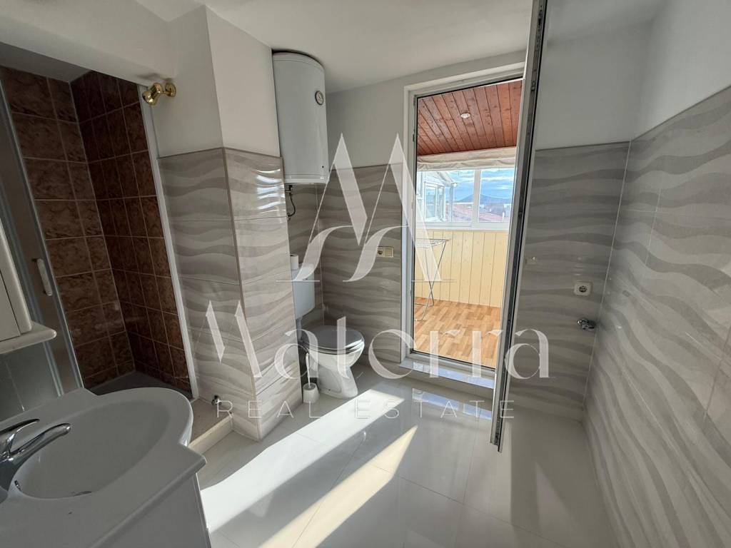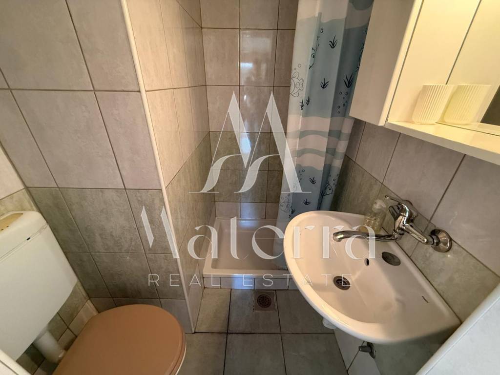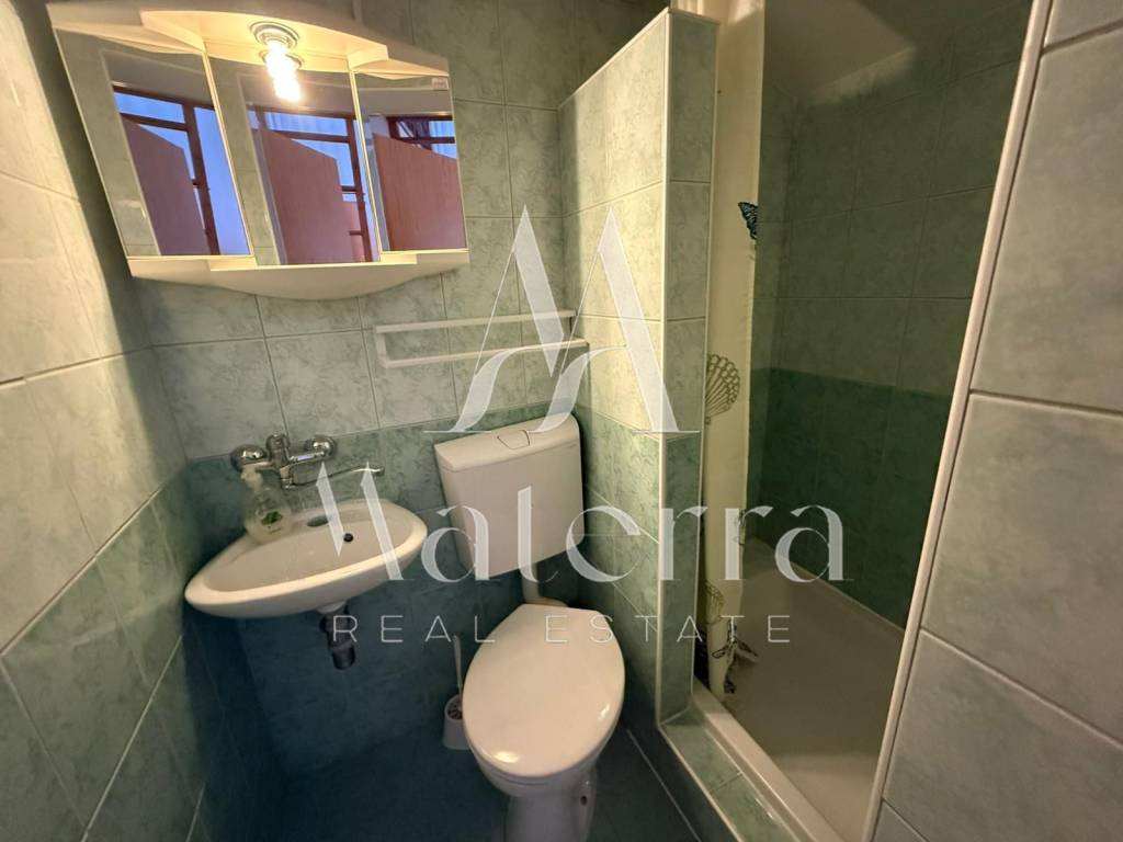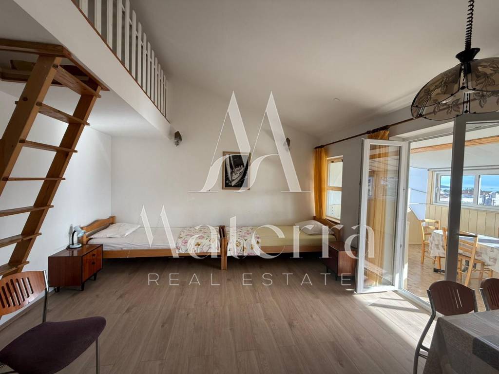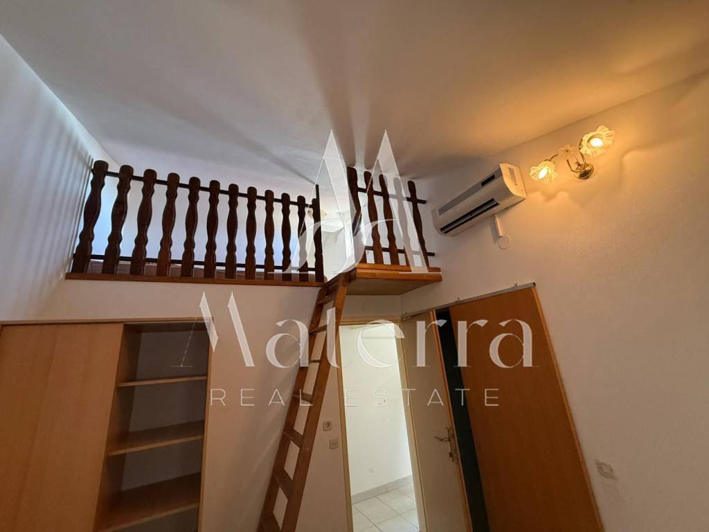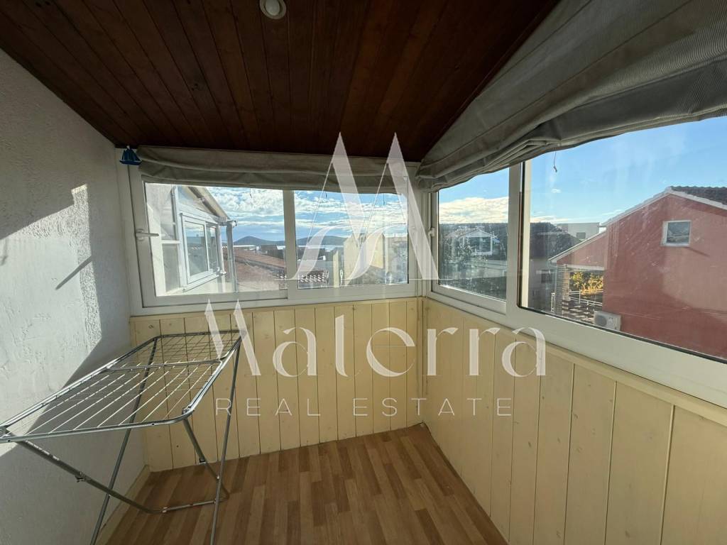 The apartment consists of two bedrooms, each with its own bathroom and a loft bed. The living room and all bedrooms are air-conditioned, and the kitchen is functionally equipped. An enclosed terrace adds extra value, perfect for relaxation and enjoying the tranquility of home. The south-facing orientation ensures plenty of natural light throughout the day, while the open sea view enhances the property’s appeal.