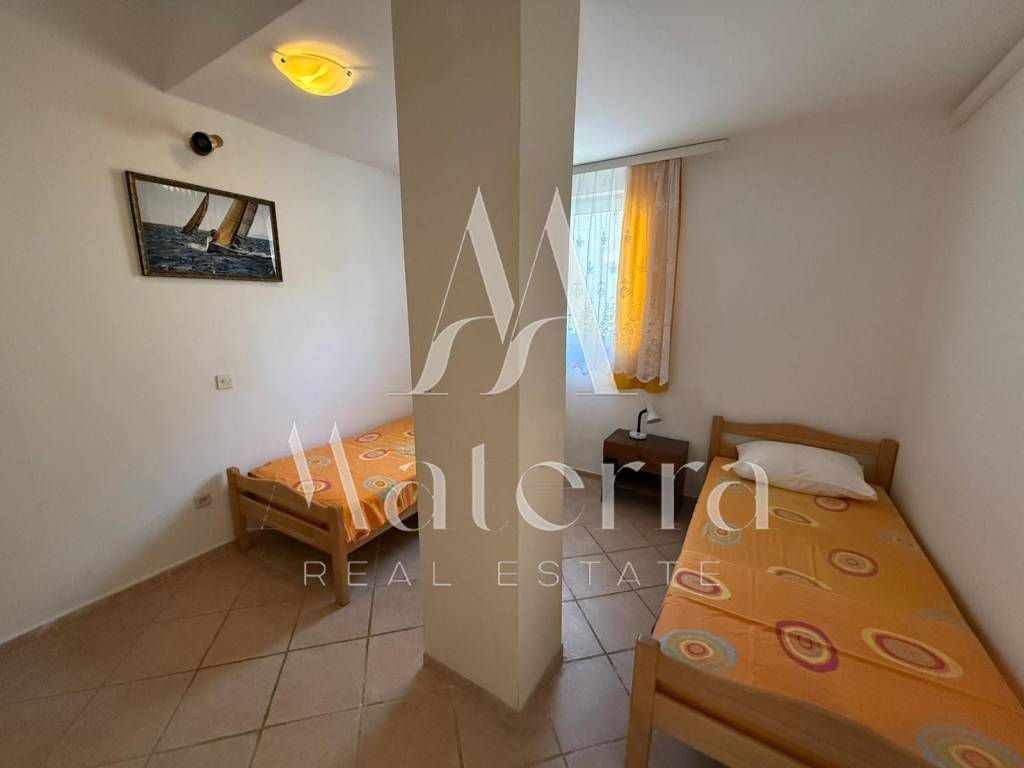 An apartment with a total area of 106.92 m² is for sale, located on the ground floor of a small residential building in a quiet part of Vodice. The location is extremely convenient, with shops, a school, public transport, and all other essential amenities for comfortable everyday living nearby, while the sea is only 290 meters away.