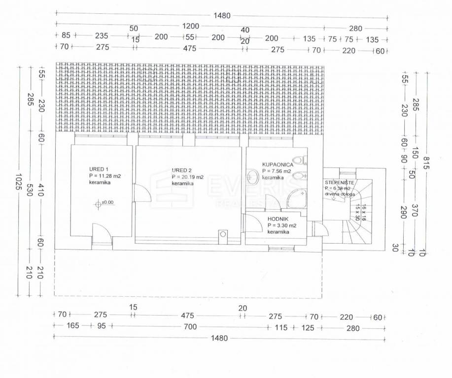 The second house with a total area of 105.35 m2 consists of a kitchen, a dining room, a spacious living room with access to the porch in front of the house, a staircase and a storage room on the ground floor with an area of 63.02 m2, and a large bathroom, hallway and two bedrooms on the first floor 42.33 m2.