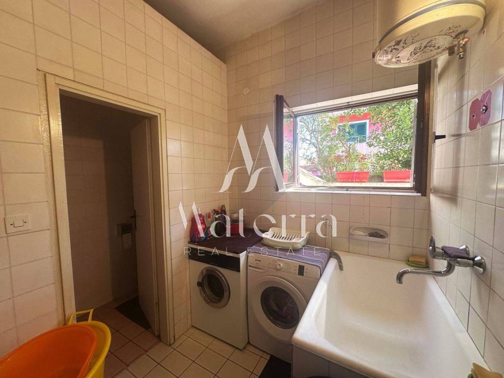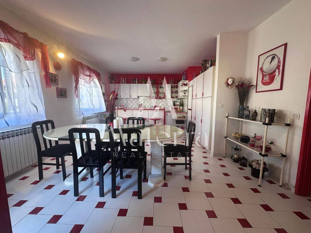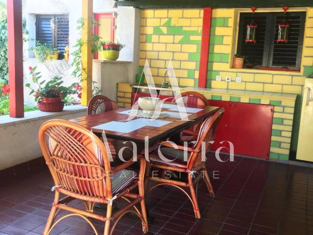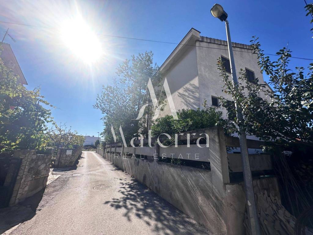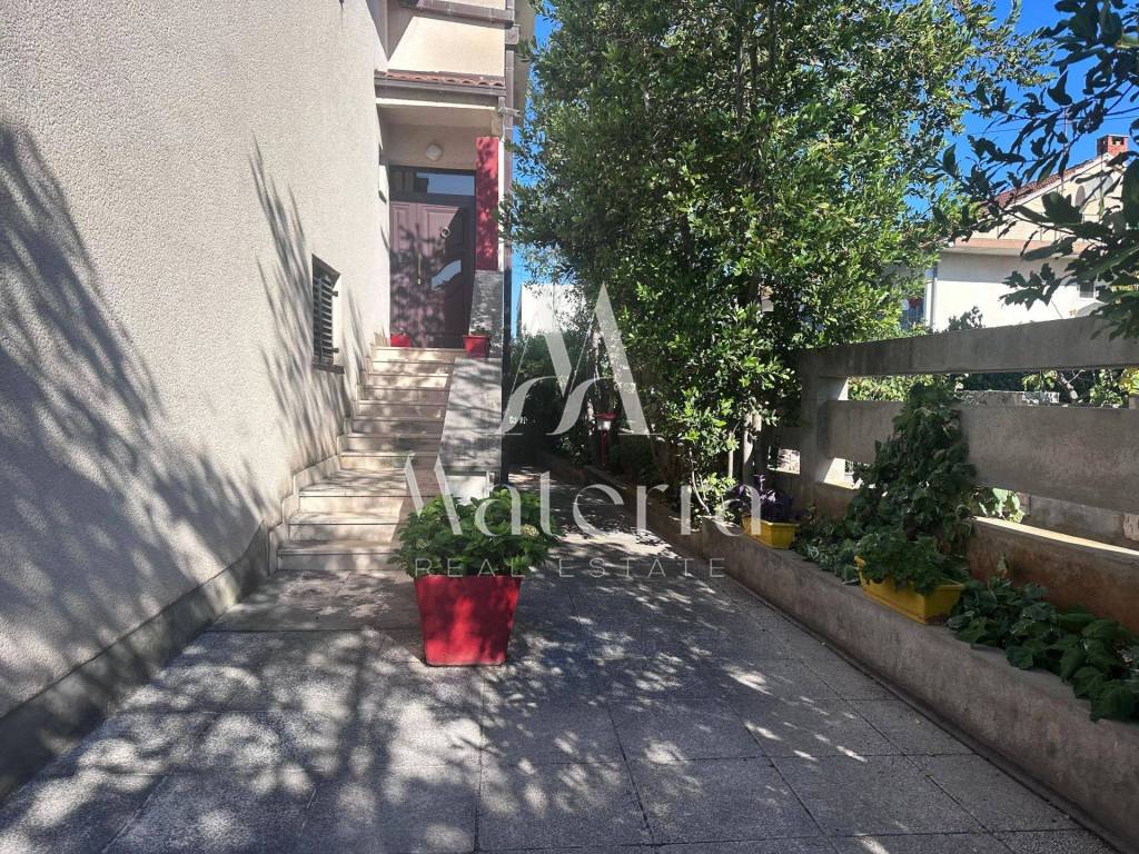 In Brodarica, a spacious house is for sale, located only 250 meters from the sea, featuring a large garden and a double garage. The plot of 750 m² includes the main house, two garages, an outdoor kitchen, and a beautifully landscaped garden with Mediterranean plants. The house has two separate entrances. The ground floor entrance leads to the kitchen, dining room, living area, bathroom, and a technical room with a central heating system. An internal staircase connects the basement and the upper floors. The basement, with a surface of 118 m², was previously used for business purposes, but thanks to its practical layout and natural light, it can easily be converted into living space. It also has a separate electricity connection, making it suitable for different uses. On the first floor, there is a spacious kitchen with living and dining area, access to two balconies, and a separate entrance to the house. A few steps lead to three bedrooms – one with its own bathroom, while the other two share a bathroom equipped with a bathtub. The high attic is currently unfinished and offers the possibility to create additional living space or a separate apartment, tailored to the buyer’s needs. The house features attractive architecture with multiple balconies, providing plenty of outdoor living space. The exterior area is well maintained, with a covered summer kitchen, barbecue, and dining space – perfect for gatherings during the warm months. In front of the property, there are two garages that allow comfortable parking and easy access to the house. The location is peaceful and pleasant, just a short walk from the beach, shops, promenade, cafés, and other amenities. For more information and to arrange a viewing, we are at your disposal. The agency commission is 3% of the achieved purchase price.