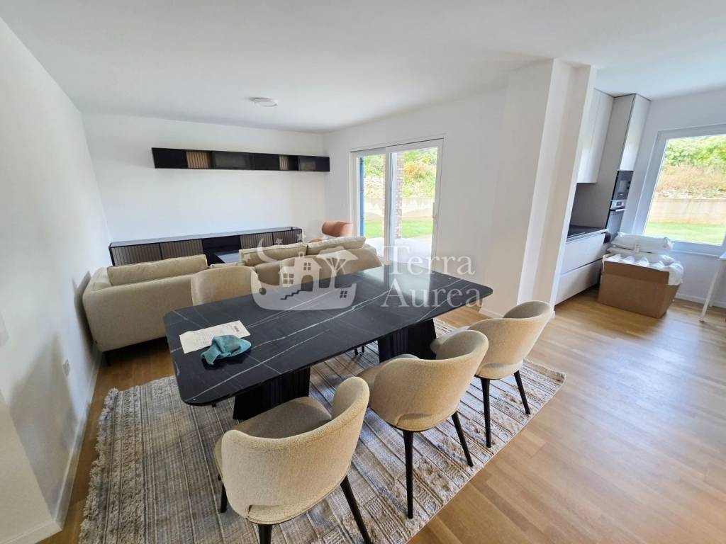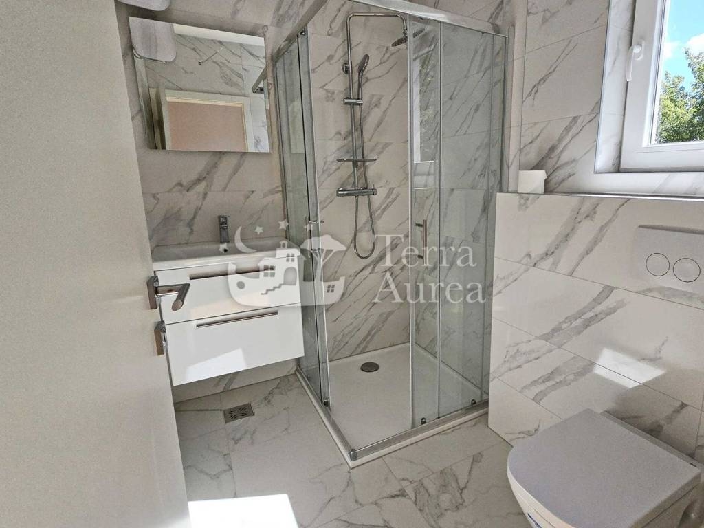 The ground floor consists of a modern two-room apartment with an open space kitchen and living room, access to a spacious covered terrace and two bedrooms, each with its own bathroom. One of the rooms has access to its own covered terrace. In addition, there is an additional toilet, an entrance hall with a wardrobe and a common staircase.