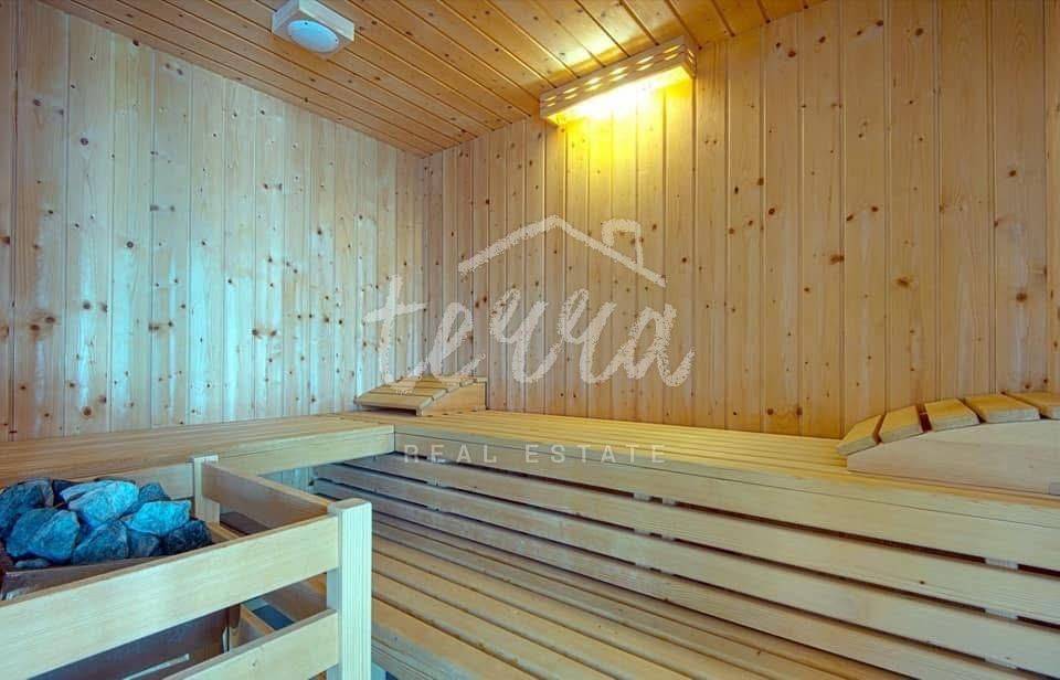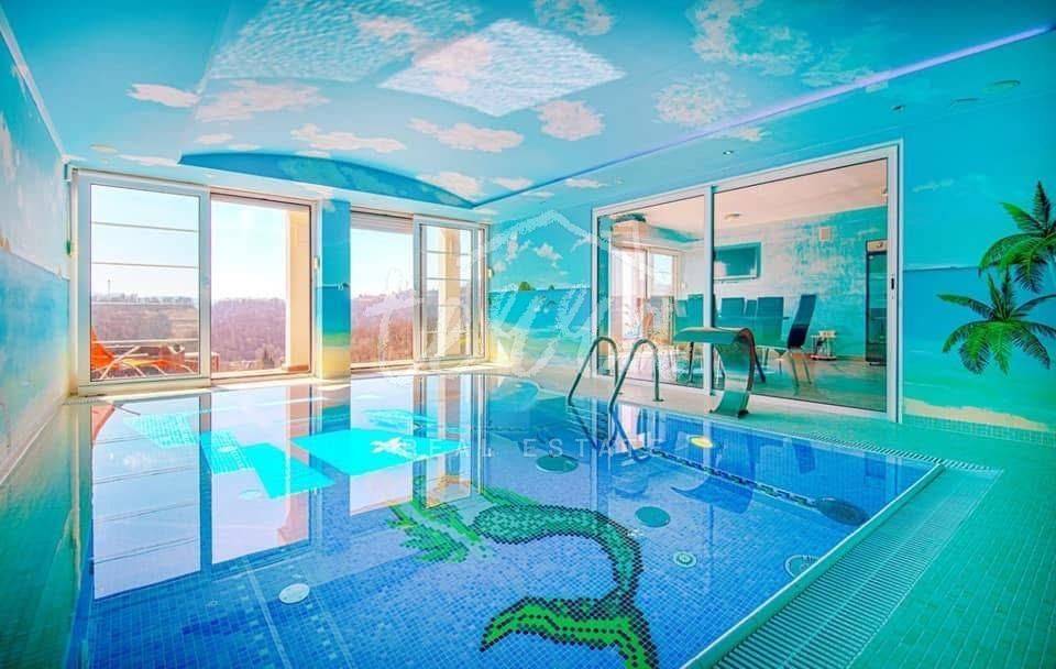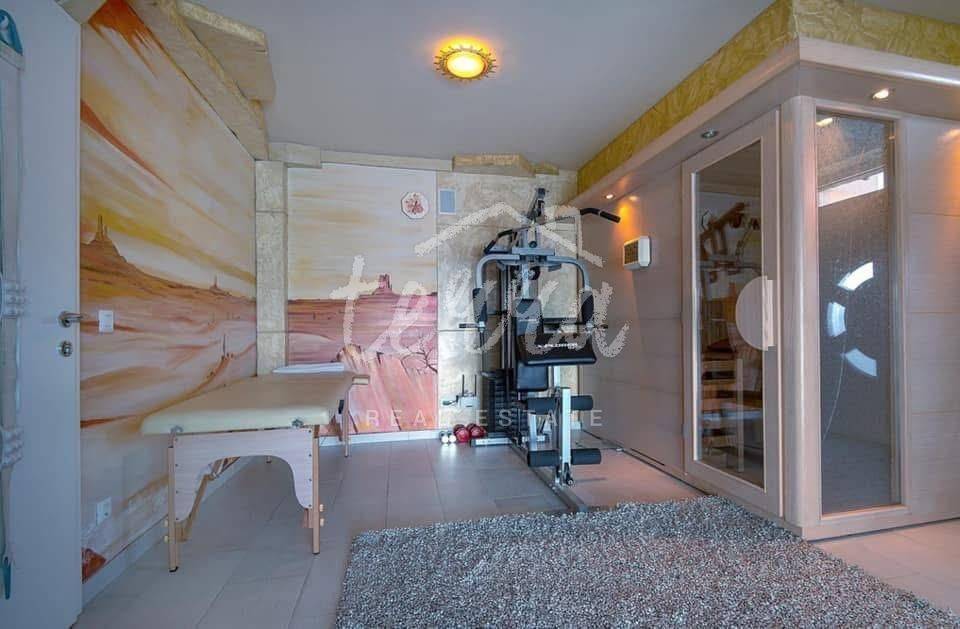 A special highlight is the wellness facilities – the house features a swimming pool with counter-current swimming and 27 hydromassage jets, a Finnish sauna, and a private gym. Additionally, there is a social room with a kitchen, two laundry rooms, an ironing room, a pool machine room, and a basement.