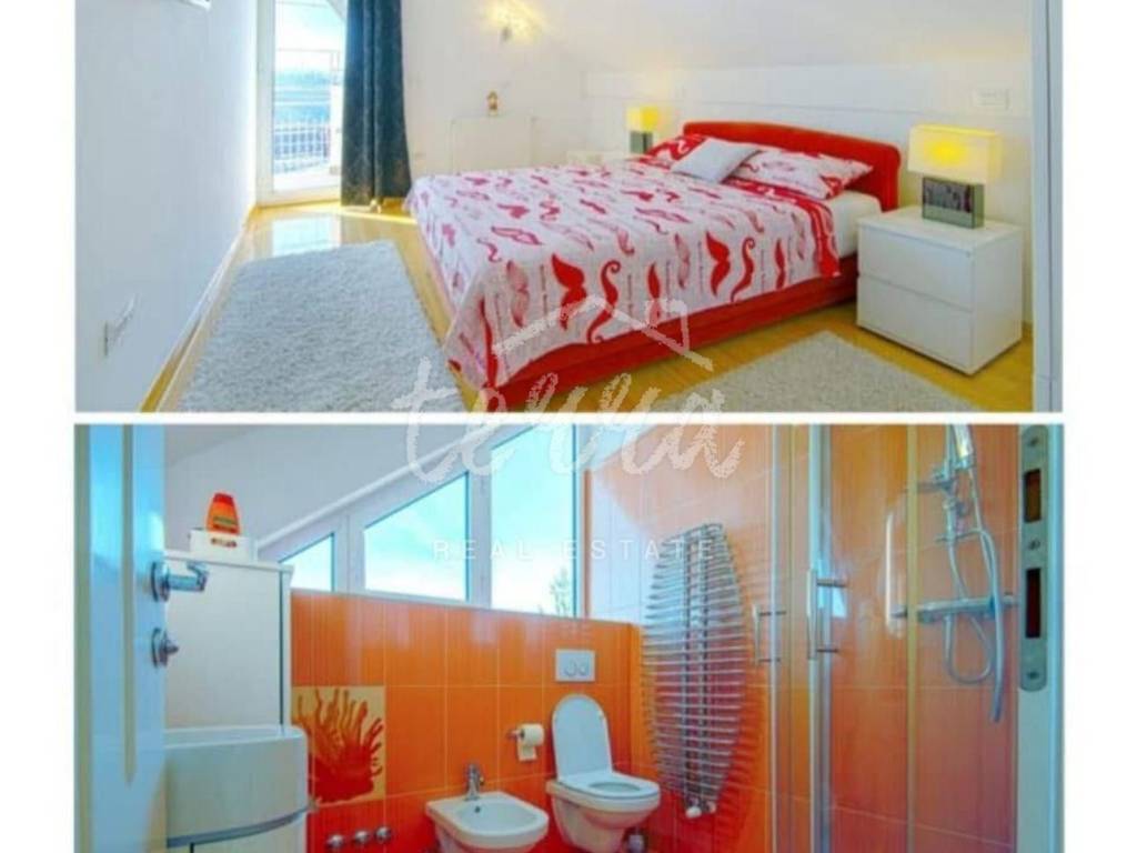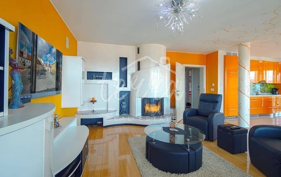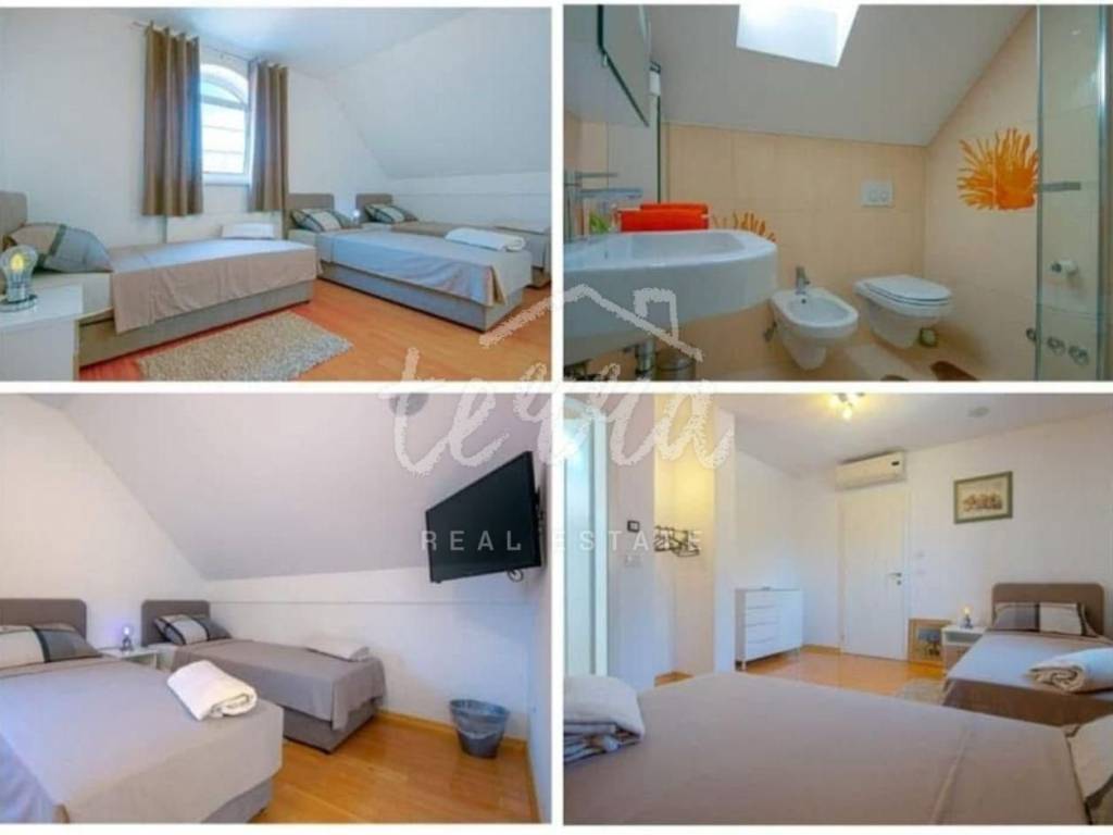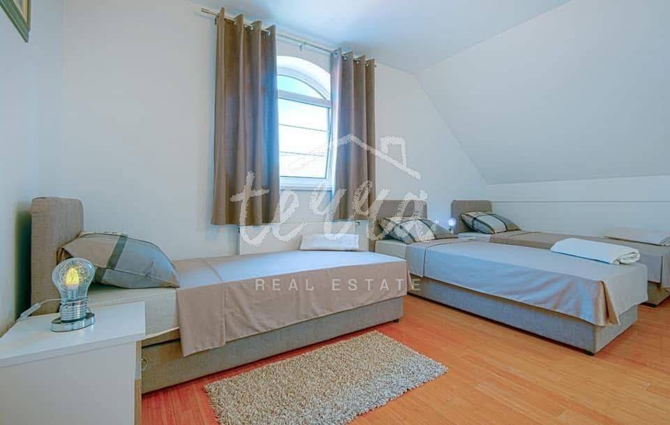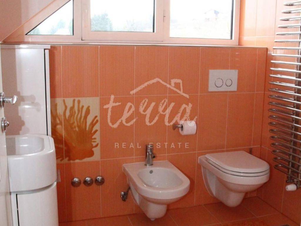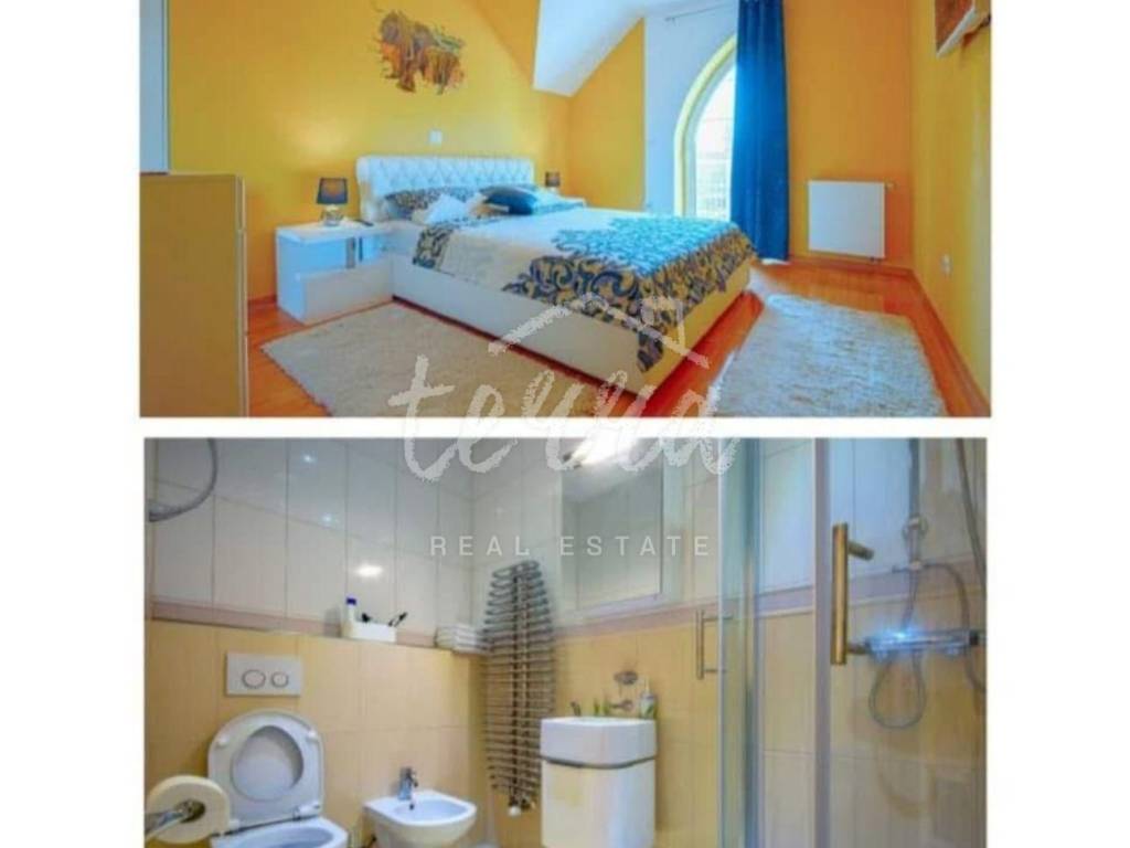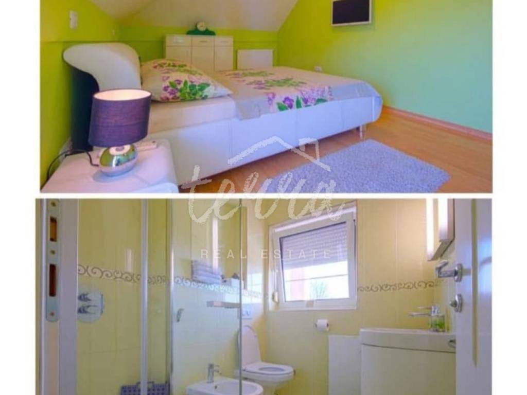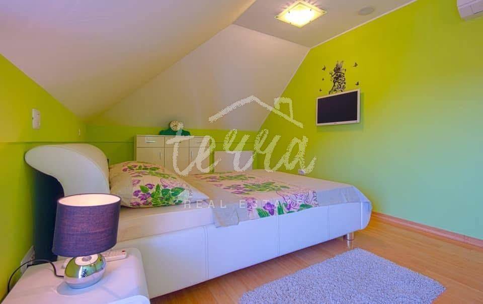 The house spans multiple levels and offers a spacious living room with access to a 24 m² terrace, which provides a beautiful view of Varaždinske Toplice. In addition to the living area, there is a dining room, a fully equipped kitchen, a master bedroom with a private bathroom and wardrobe, an additional bathroom with a steam bath, and a separate toilet.