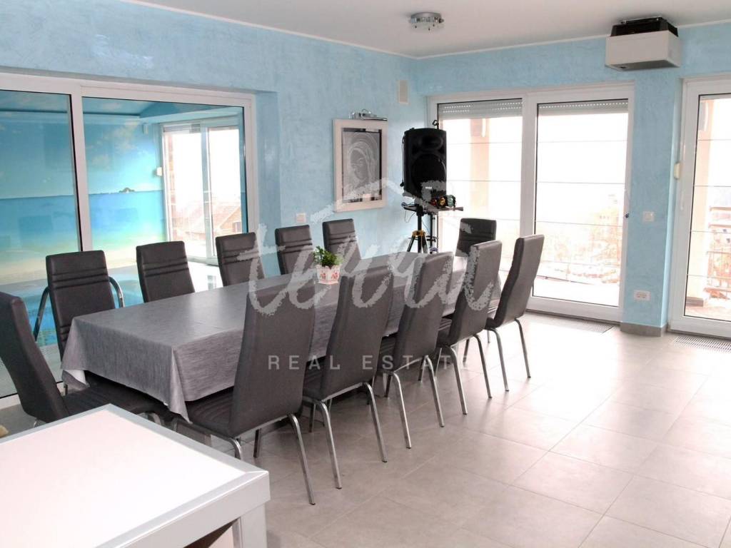 Technical features include solar collectors for water heating, radiator and fan-coil heating, underfloor heating in bathrooms and the pool, a central air conditioning system, and a dehumidification system. The house is equipped with video surveillance and installed connections for TV, Internet, telephone, and audio systems.