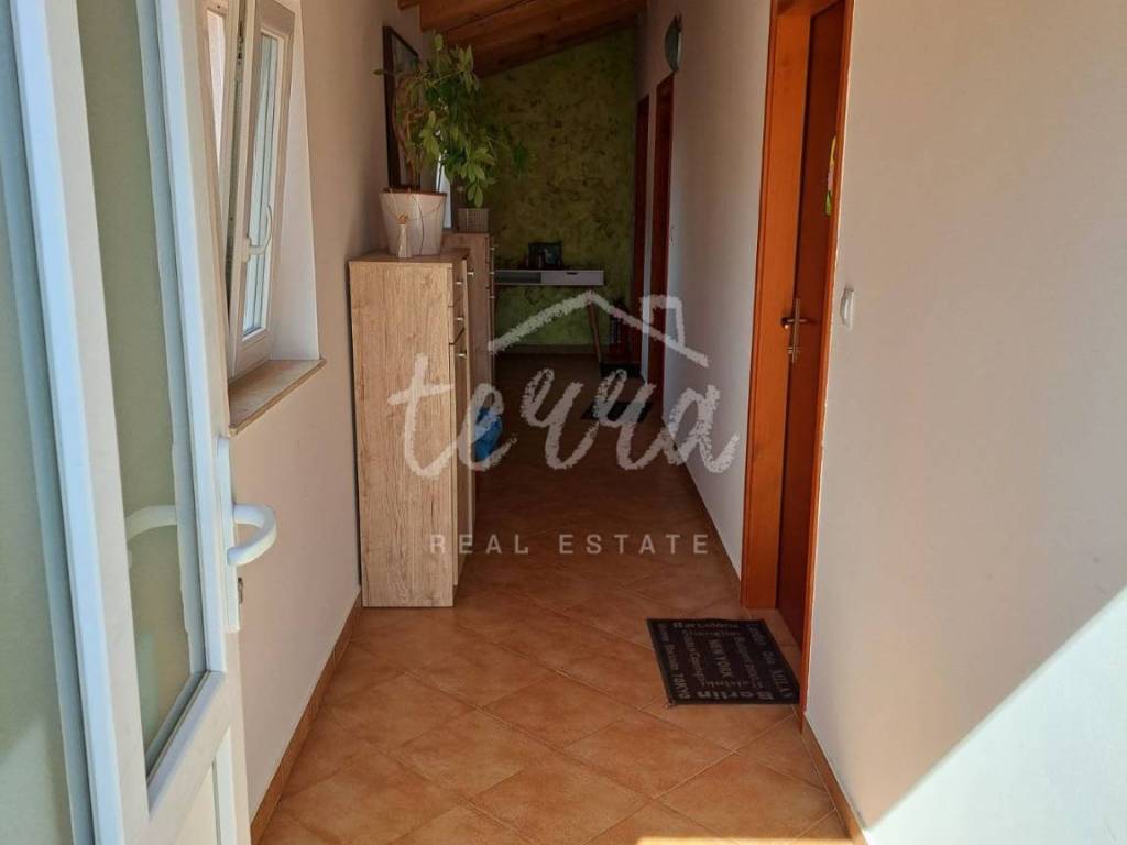 In addition to the business space on the ground floor, there is another smaller apartment consisting of a kitchen with a dining room, one bedroom and a bathroom, and three bedrooms with a bathroom, with a total area of ​​74 m2 on the first floor, and a part of the garden of 390 m2. The house is heated with heating oil, a wood-burning fireplace and air conditioning.