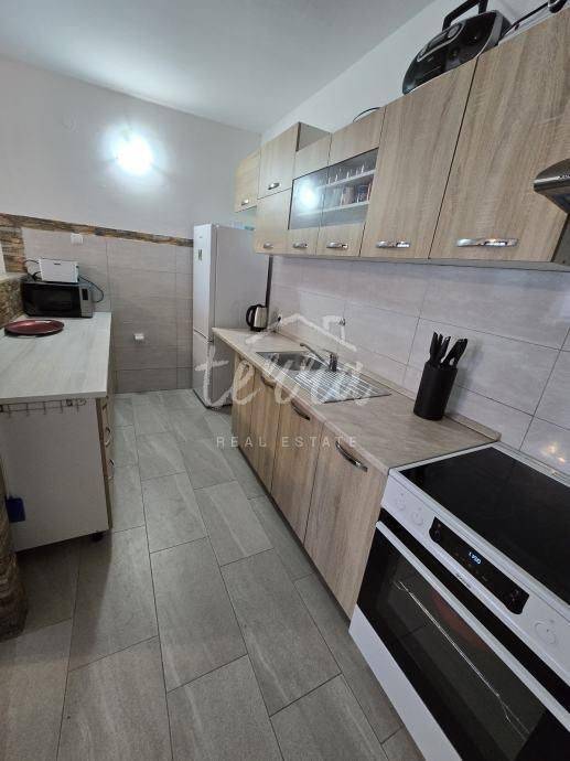 We are selling a flat in a residential building with a total area of 65m2 with a beautiful view of the sea. It consists of two spacious bedrooms, a kitchen with a living room, a hallway, a bathroom, a storage room and a balcony. The flat was renovated in 2023 and is completely ready to move in. The flat has a woodshed on the ground floor of the building. Parking spaces in front of the building. Property in a beautiful and quiet location.