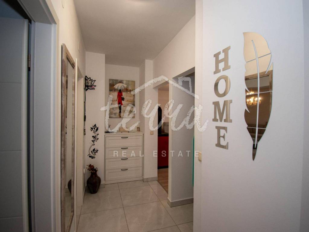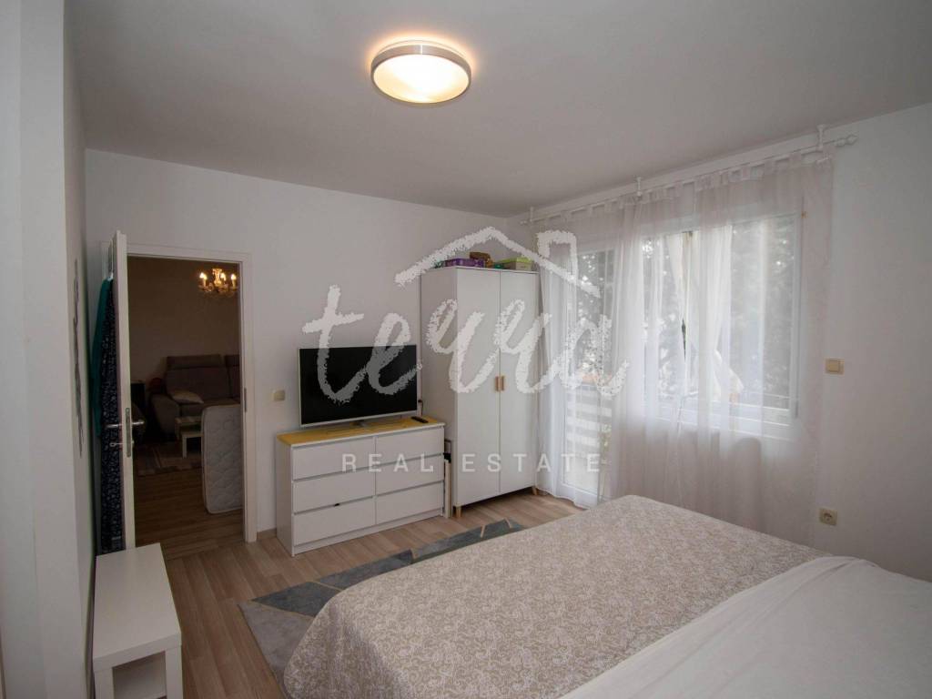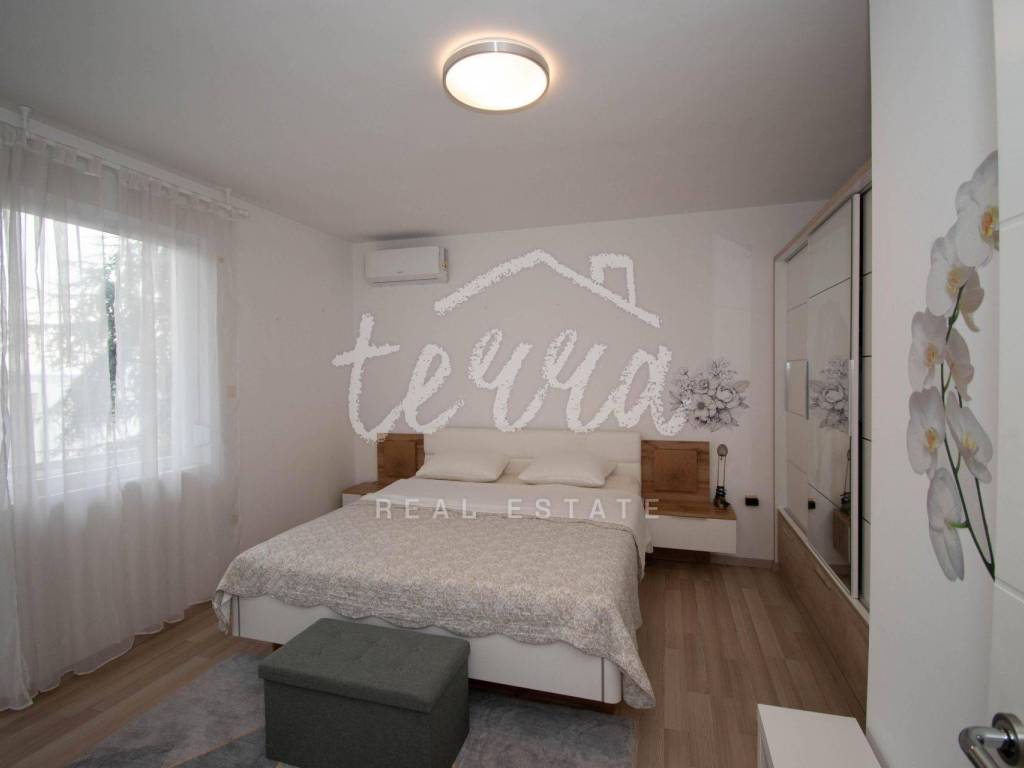 A beautiful flat of 77 m2 in the centre of Crikvenica. The flat is located on the 1st floor and consists of an entrance hall, a spacious living room with access to the balcony, two bedrooms, a kitchen with a pantry and access to a smaller balcony and a bathroom. The flat was completely renovated in 2021. Beautifully decorated and furnished and equipped with air conditioning and a wood stove. Associated woodshed and parking space in the garden.