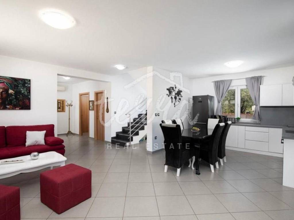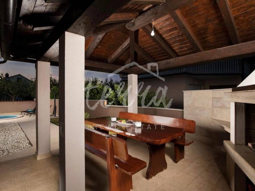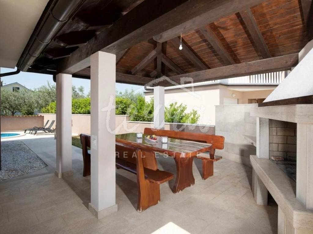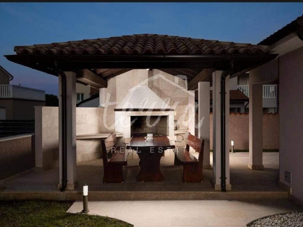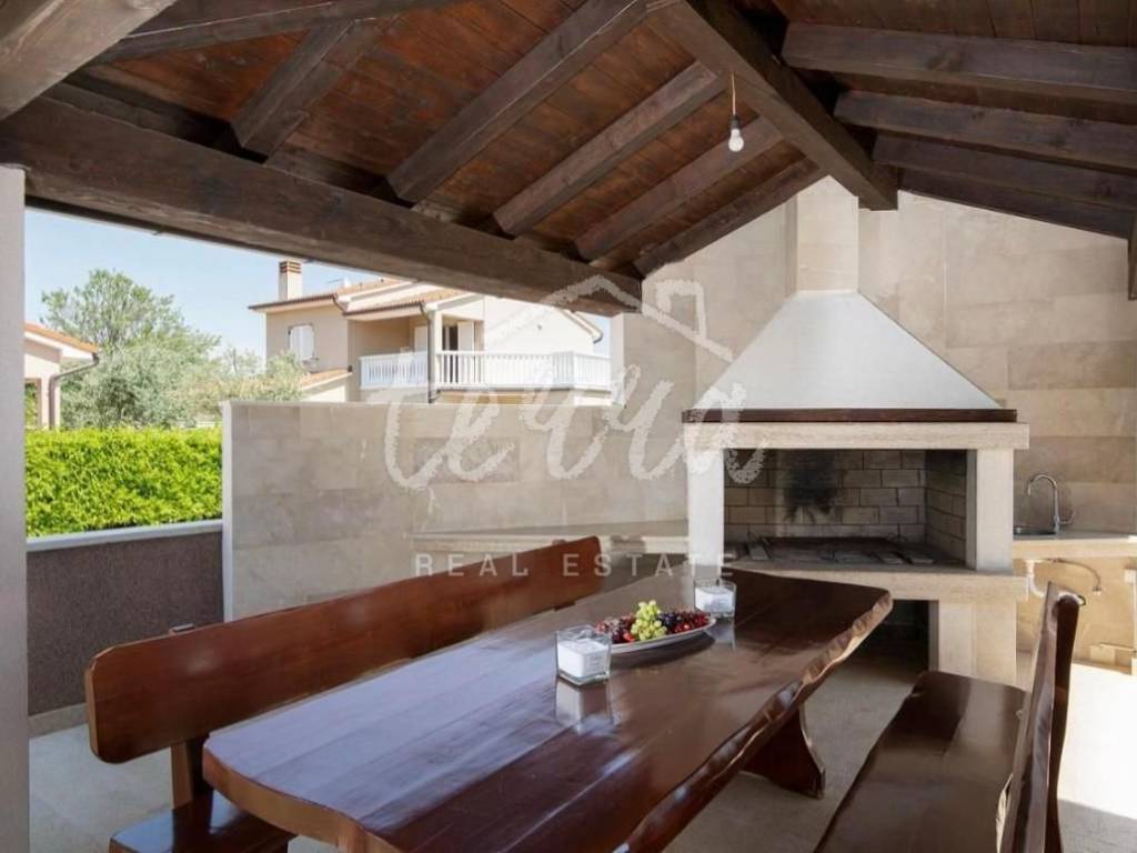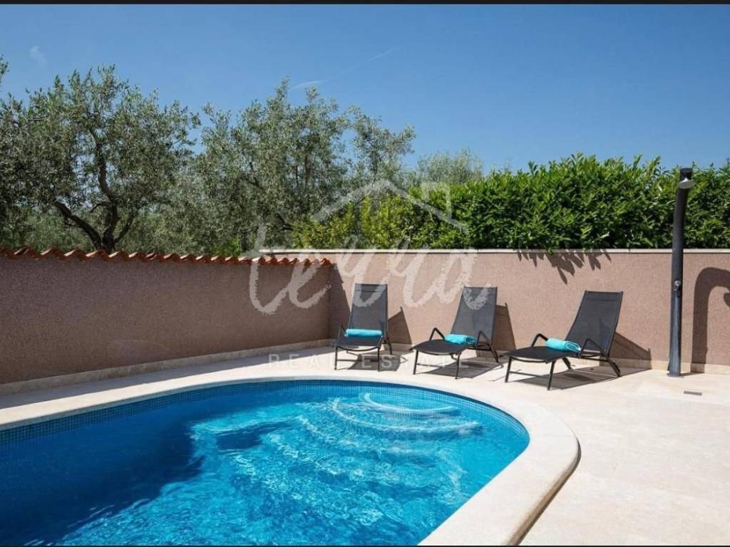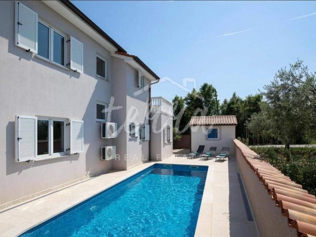 In a quiet settlement in Istria near Pula, the largest city in Istria, this beautiful modern furnished and equipped house with a swimming pool is for sale, with a total living area of ​​210 m2. The house is located far from the city crowd, but it is only 5.5 km from Pula, and the sea is only 8 km away.