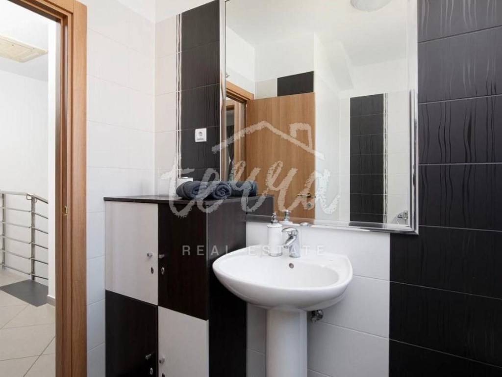 The house is spread over two floors, the ground floor and the first floor. The central part of the ground floor is a large space that unites the living room with the dining room and kitchen, with access to the pool terrace through large glass walls. In addition, there is a guest toilet and a storage room on the ground floor. An internal staircase leads to the second floor where there are three bedrooms, the master bedroom has its own bathroom, while the other two bedrooms share a common bathroom. In addition, there is a large terrace with one covered part on the first floor.