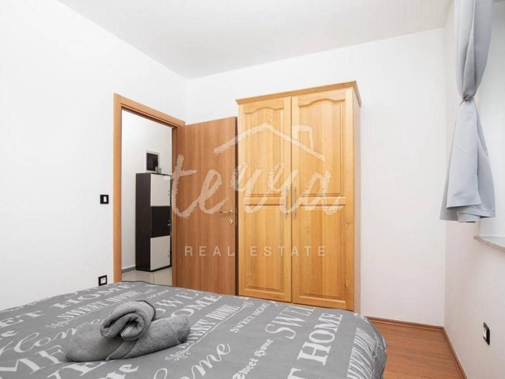 The central part of the garden is a beautiful swimming pool measuring 9*3.8 m, with a sunbathing terrace and an outdoor shower, and a large covered outdoor kitchen with a fireplace and a large wooden table. There is also a garage within the house, and the paved part of the garden is intended as a parking lot for at least two more vehicles. The yard is completely fenced, providing a sense of privacy.