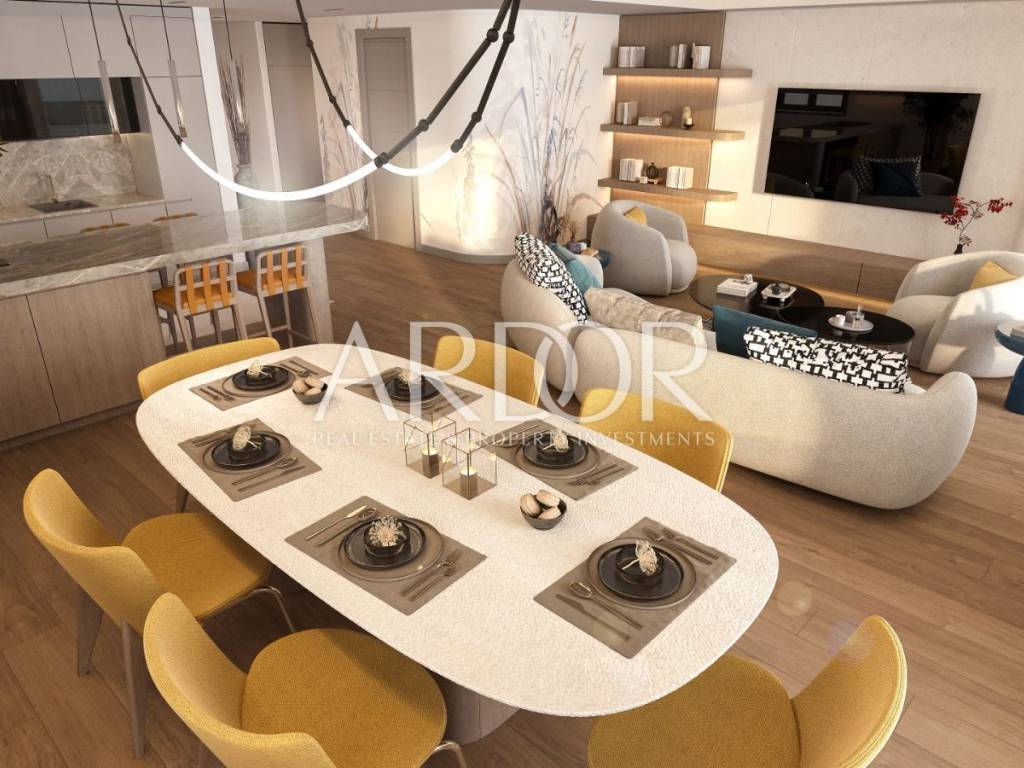 KANTRIDA RESIDENCE - we are proud to present a luxury residential complex under construction, located in a prime, highly sought-after location in Rijeka, where elegance, comfort and a spectacular view of the sea come together from the ground floor. This exclusive complex consists of two floors of an underground garage connected by elevators to the residential area, which consists of 29 apartments distributed in three separate entrances, with each entrance leading to two apartments on each floor. The building has a total of 5 above-ground and two underground floors. There are three luxurious penthouses on the top floor.