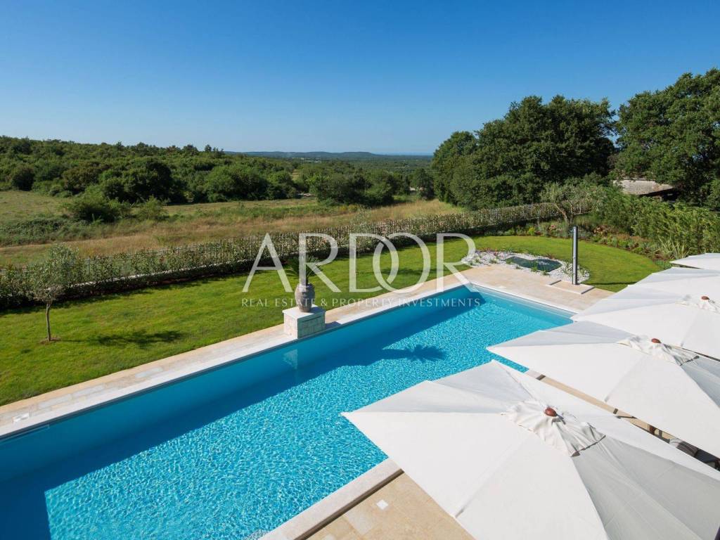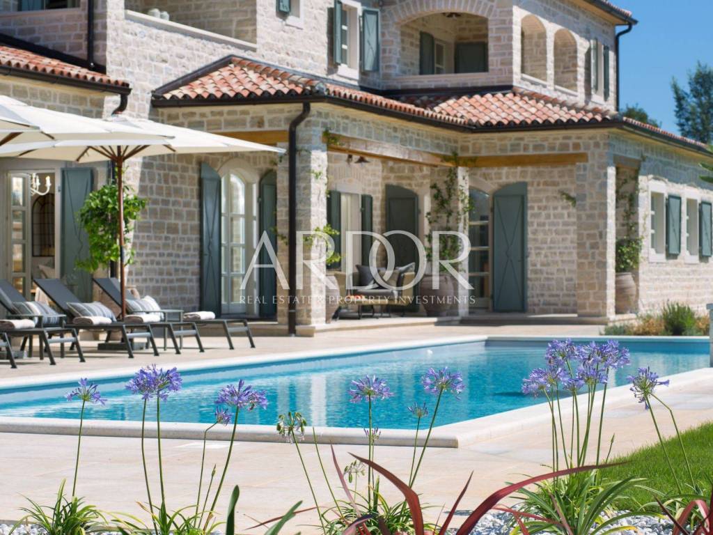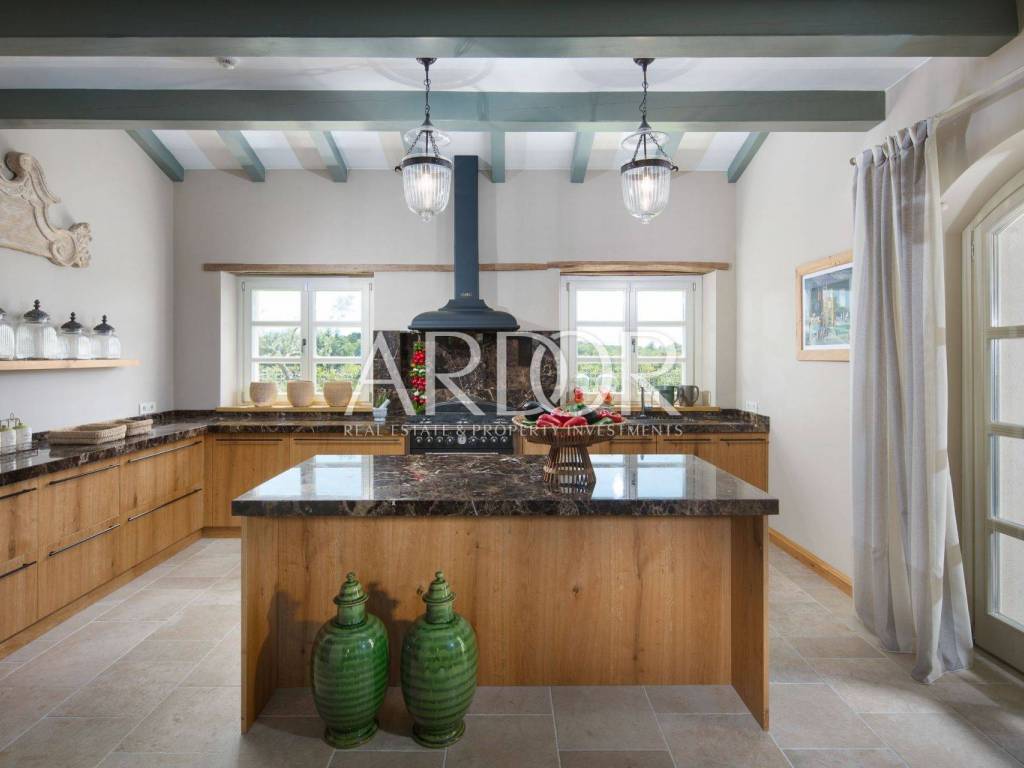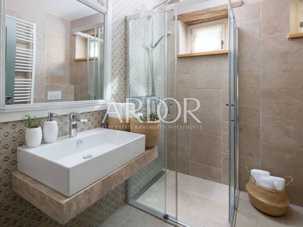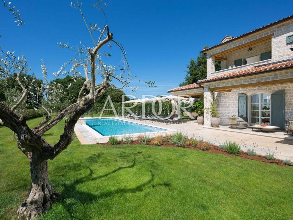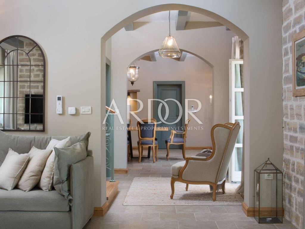 Villa Nevija boasts an impressive 372 m² of living space, situated on a 1611 m² plot surrounded by lush greenery for complete privacy. The villa's vintage charm is reflected in its airy spaces, perfect for family gatherings.