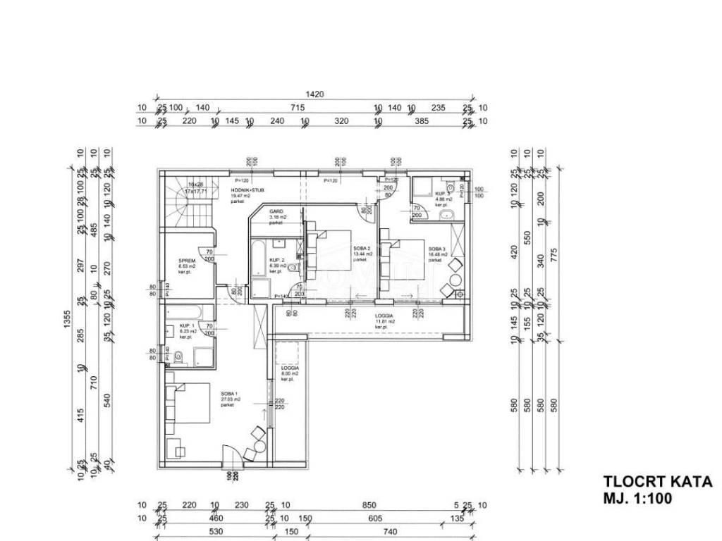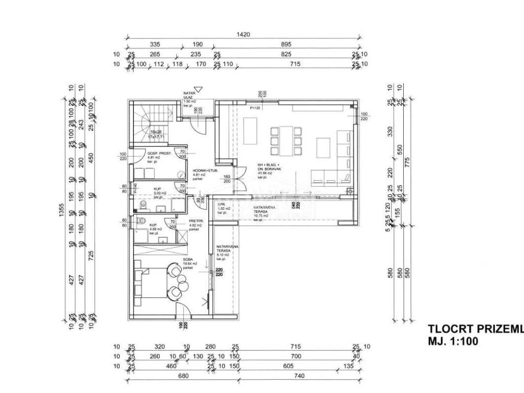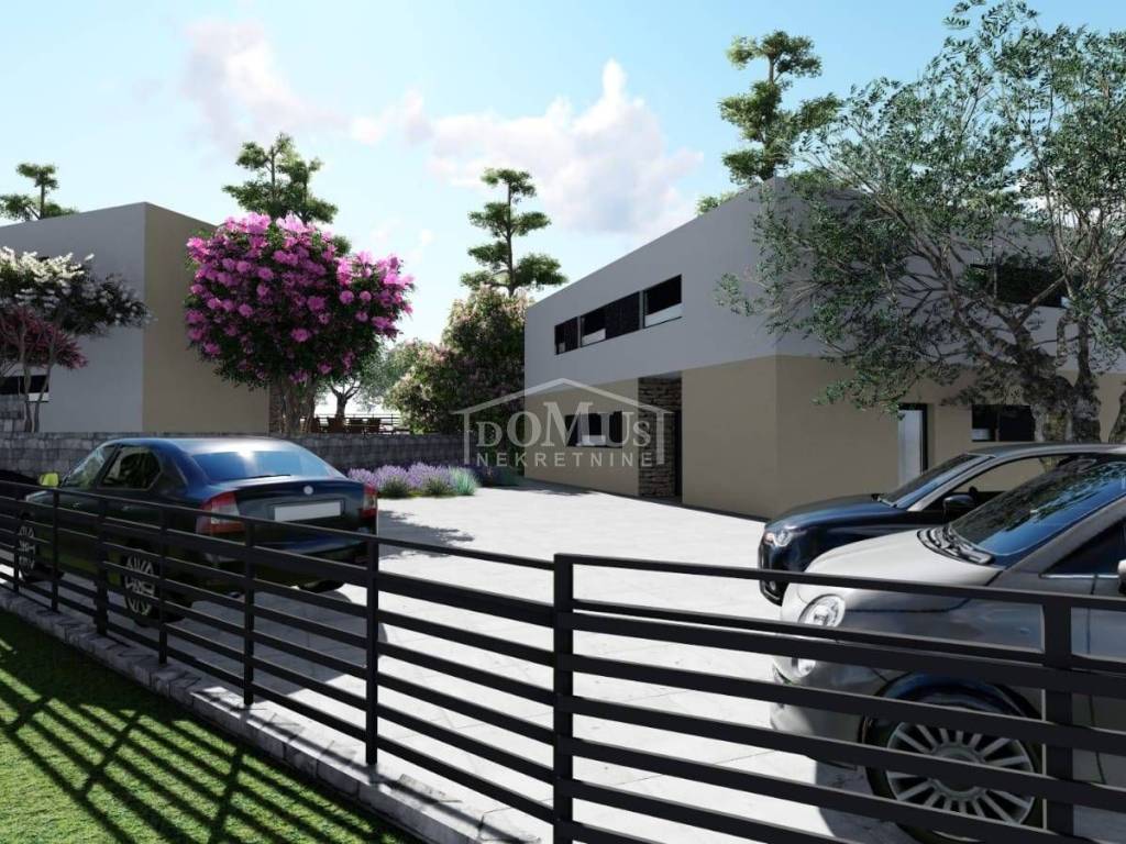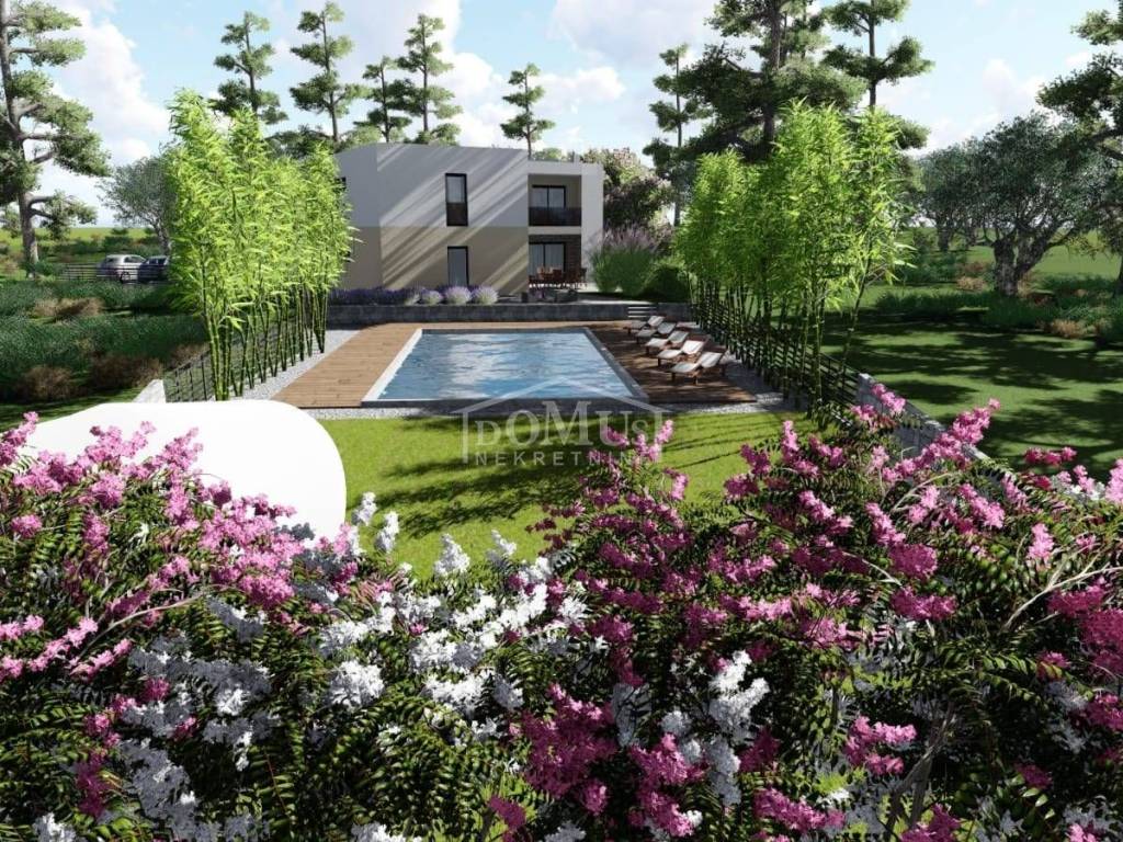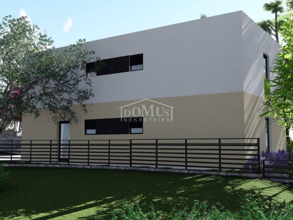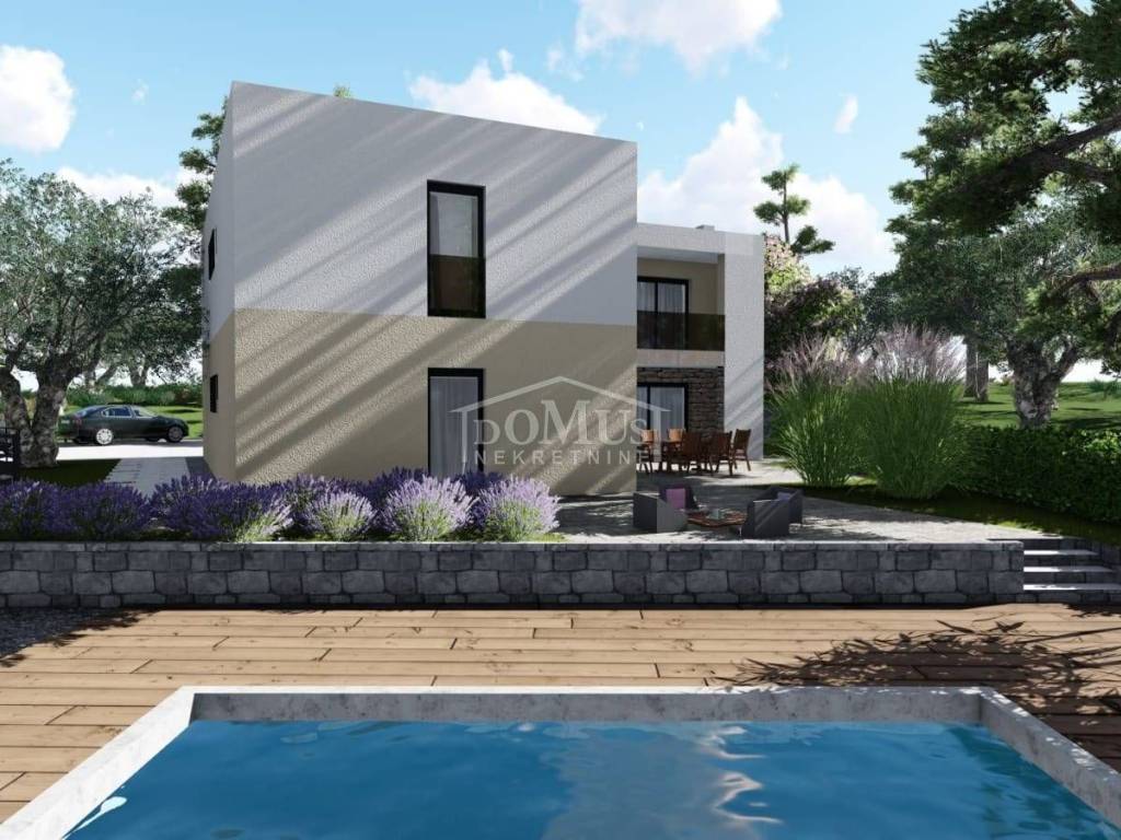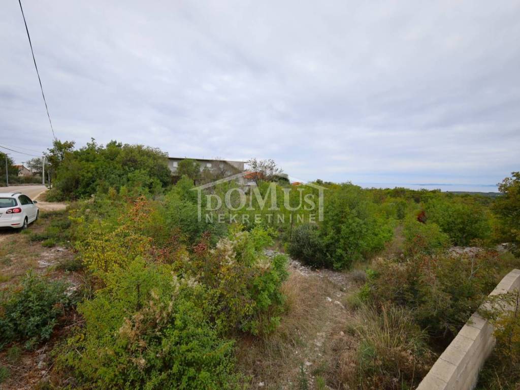 Primošten, Vadalj, quiet location, attractive building plot with sea view, total area of 1,045 m². The land has project documentation, and the building permit is in the process of being issued for the construction of a detached family house on two floors, ground floor and first floor, with a total area of 203 m² and a swimming pool. The land has a slight slope towards the west side. The distance from the town center and the beach is 5 km.