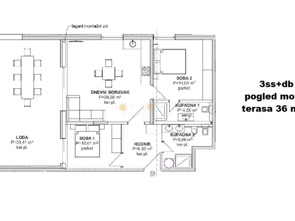 Banjole, surroundings, TWO-BEDROOM (2BR+LR) apartment for sale on the 2nd floor of a new residential building with a total of 8 apartments. The apartment has a net area of 98.50 m2, and consists of 2 bedrooms, 2 bathrooms, an open living room connected to the kitchen area and a terrace of 36 m2