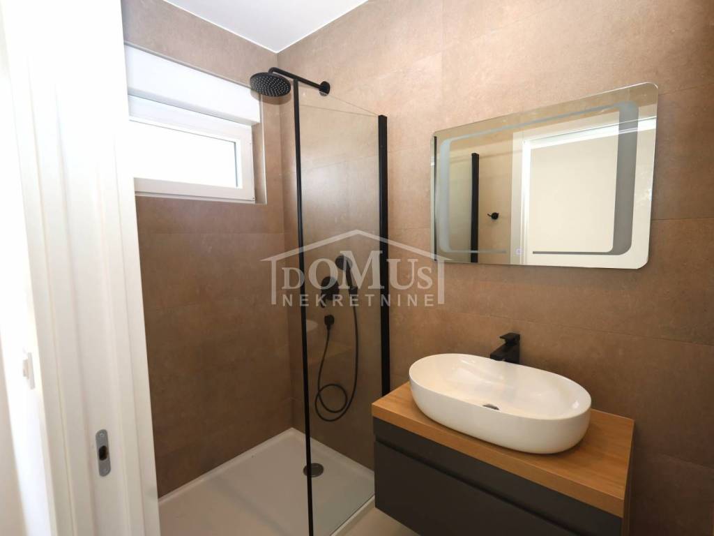 Vodice, near the beach "Plava plaža", there is a newly built residential building with 3 residential unitsThere are four floors in total: basement, ground floor, first floor and second floor. The building is modernly decorated with underfloor heating, high-quality floors and interior decoration, air conditioners for heating and cooling in every room, and electric blinds. The terraces of the residential units on the first and second floor offer a view of the sea.